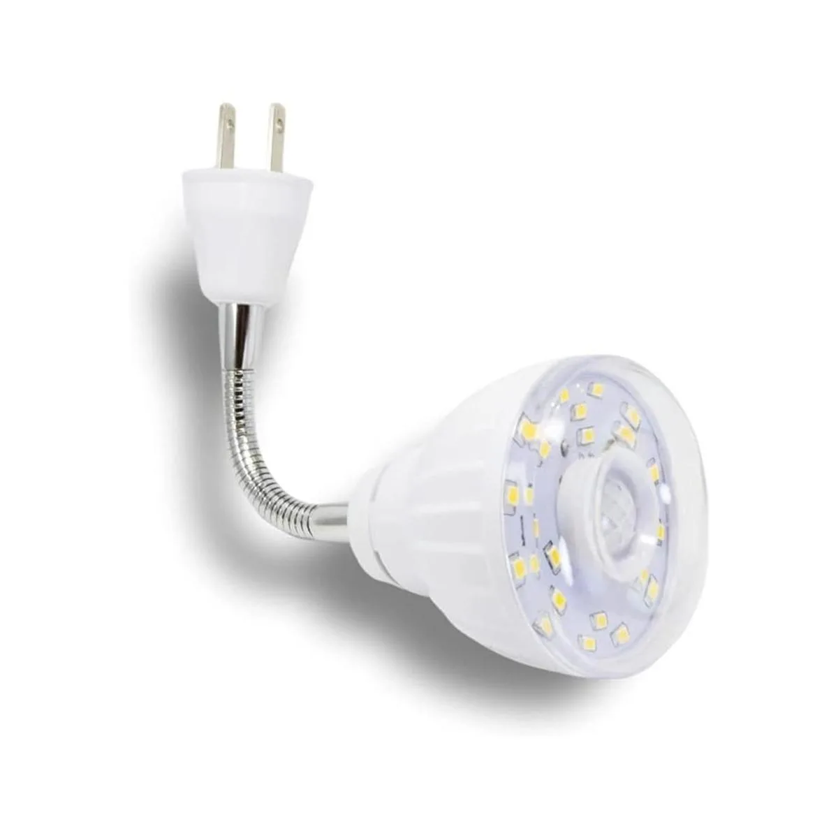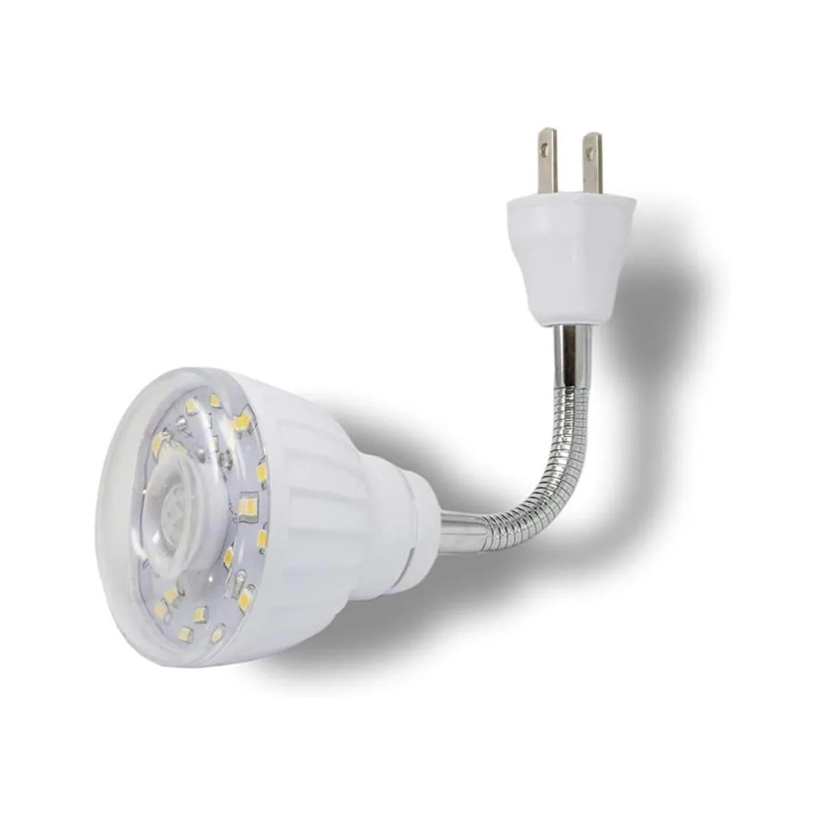 La luz inteligente del sensor de detección de movimiento está diseñada para conectar directamente a cualquier toma de corriente alterna de 100120 V con un brazo flexible. No necesita cableado ni batería. Cubre la toma de corriente. Sin interruptor, simplemente empuja en la toma de corriente.