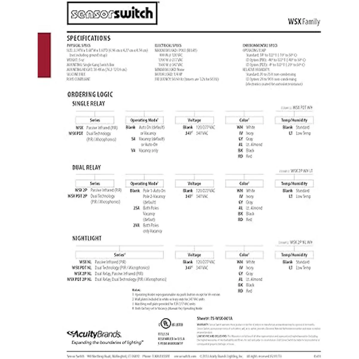 Sensor Switch WSX PDT IV Sensor de interruptor de pared de un solo polo, color marfil