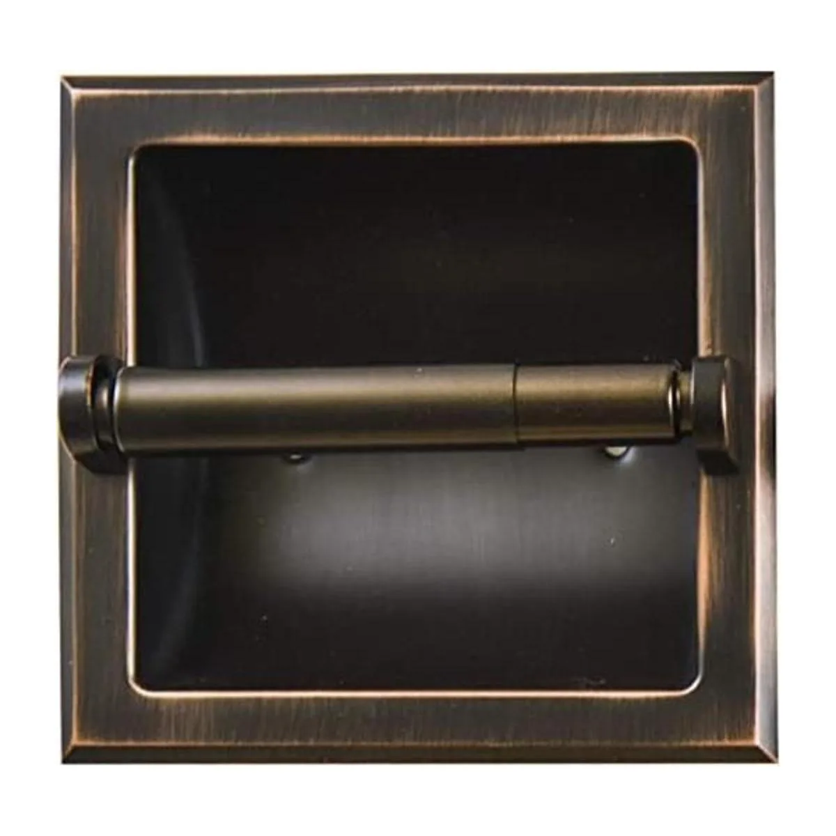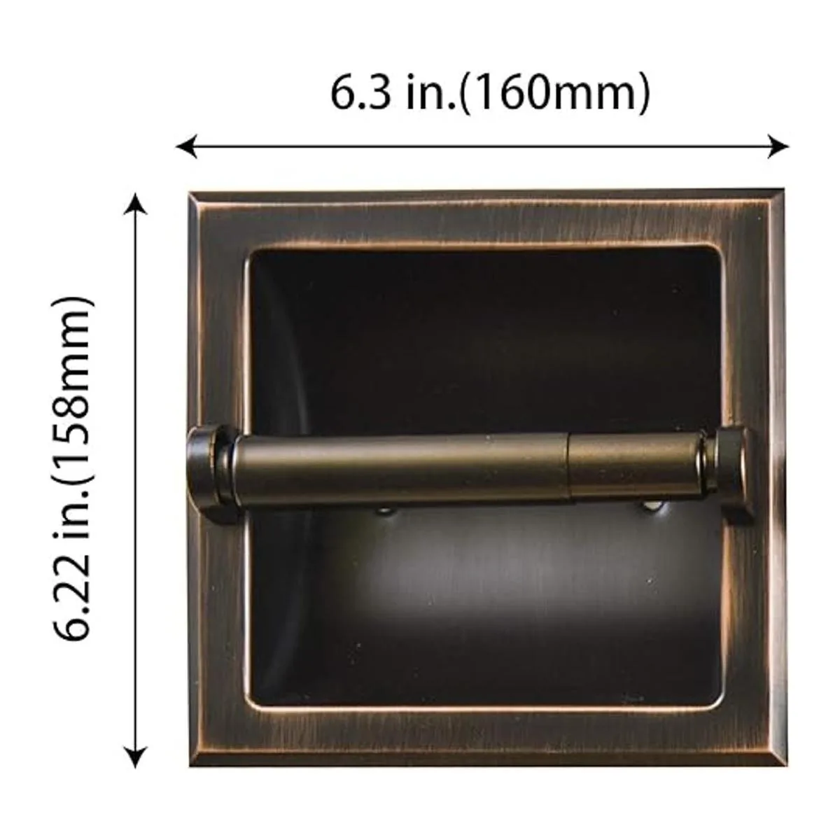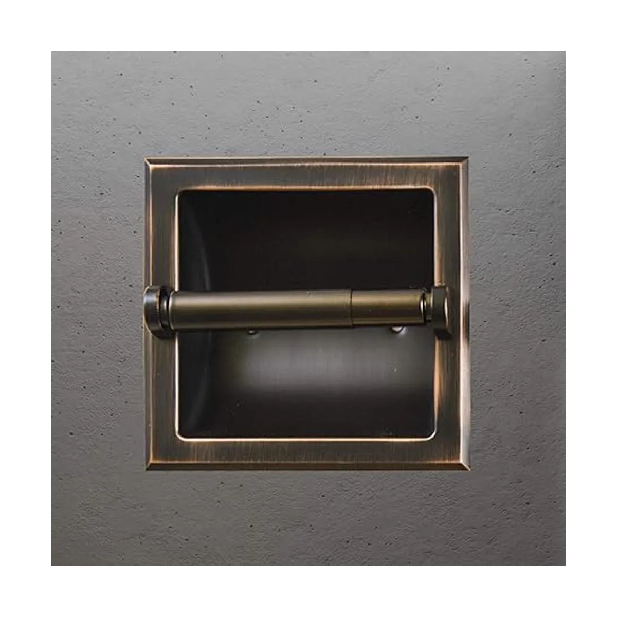 SENTO Soporte de papel higiénico empotrado de bronce aceitado, soporte de papel higiénico de metal resistente montado en la pared con soporte de montaje trasero, fácil instalación, bronce aceitado