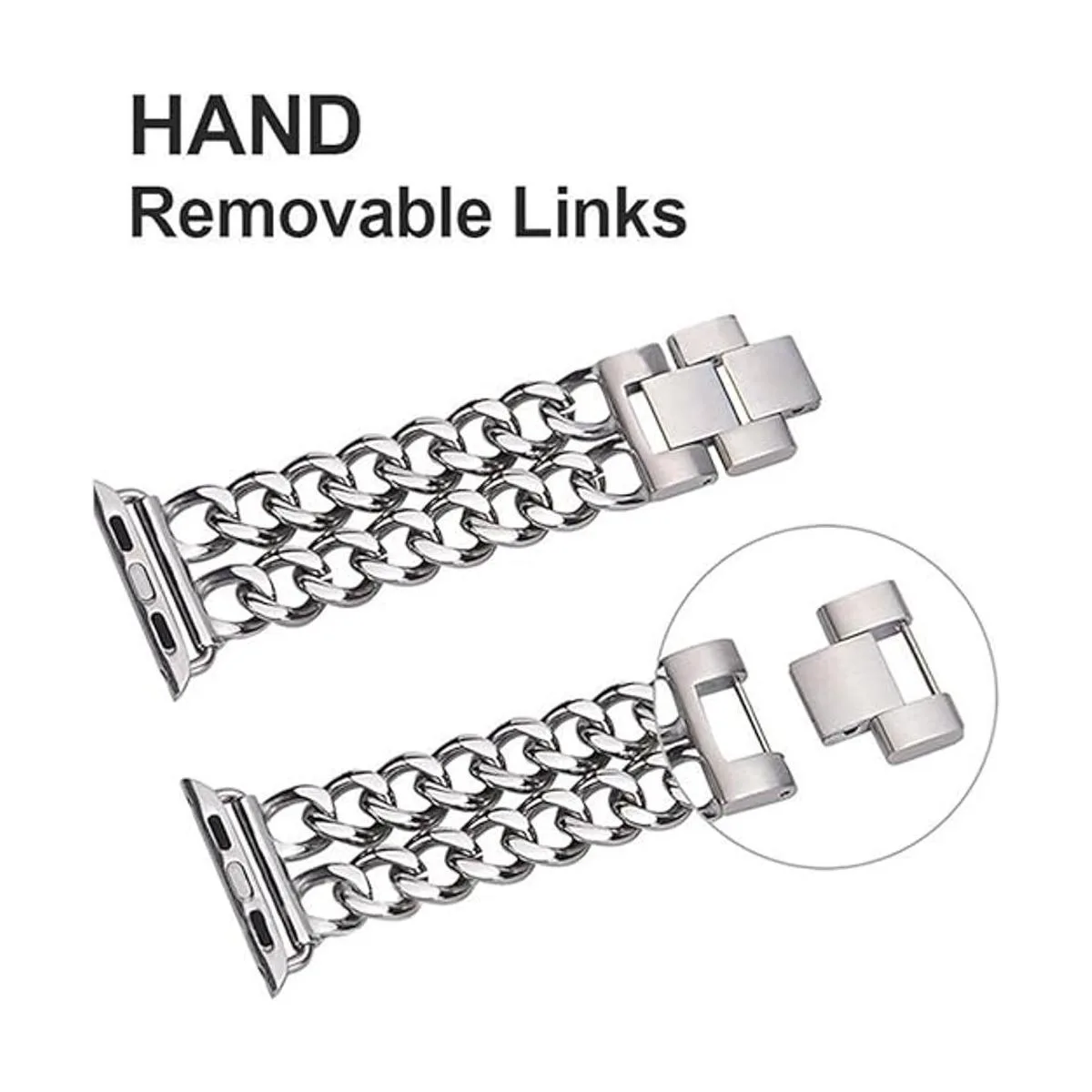 Seoaura correa de repuesto compatible con Apple Watch de 1.65 pulgadas y 1.73 pulgadas, cadena de acero inoxidable, estilo vaquero, para iWatch Series 6, 5, 4, 3, 2, 1, Nike, Sport