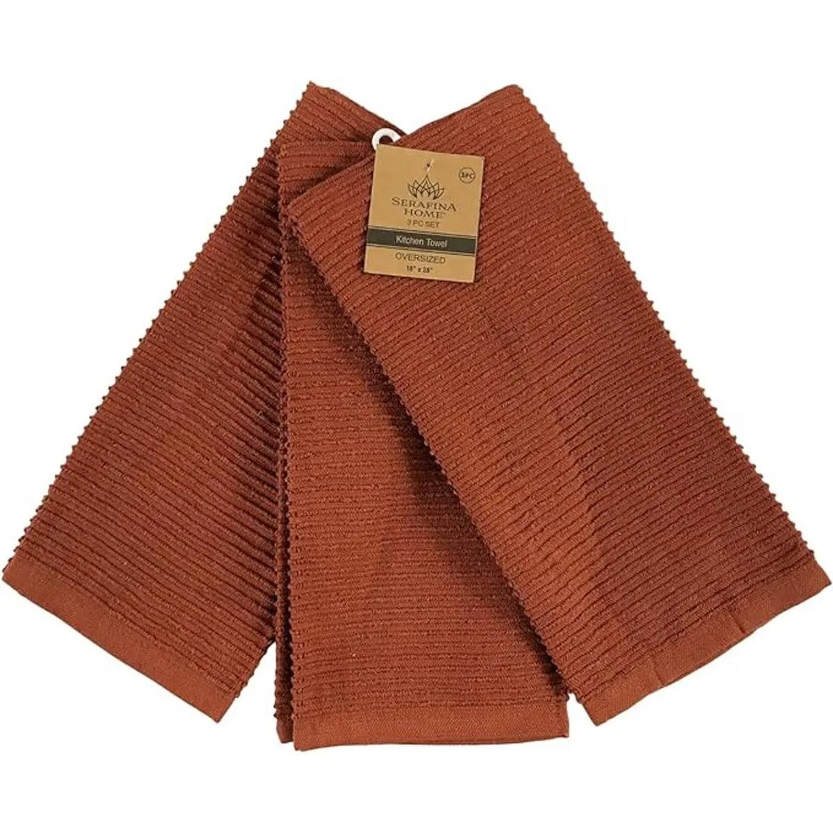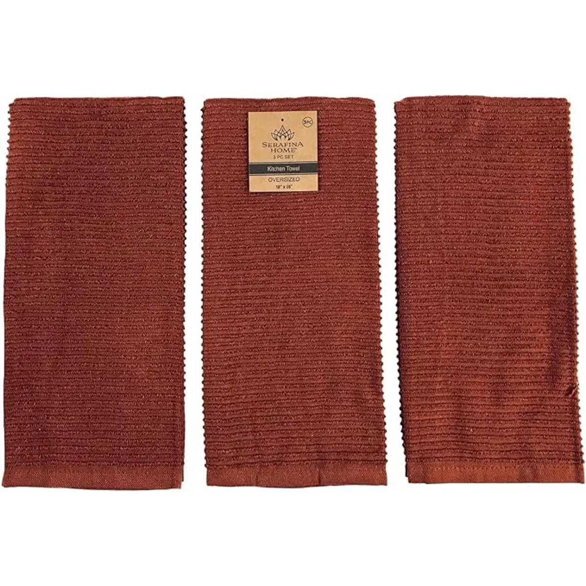 Serafina Home Toallas de cocina de color naranja quemado de gran tamaño, 100 algodón, suave y absorbente, juego de 3 multiusos, para uso diario palito de canela