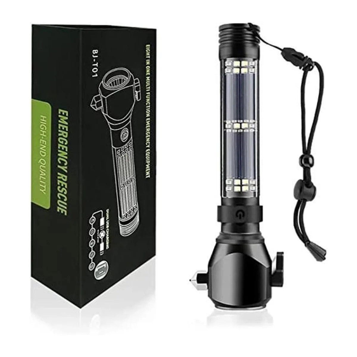 Serjur 8 en 1 luz flash multifunción, linterna recargable por USB, con interruptor de cristal, cortador de cinturón de seguridad, alarma y cargador de teléfono, linterna táctica LED para coche para emergencias