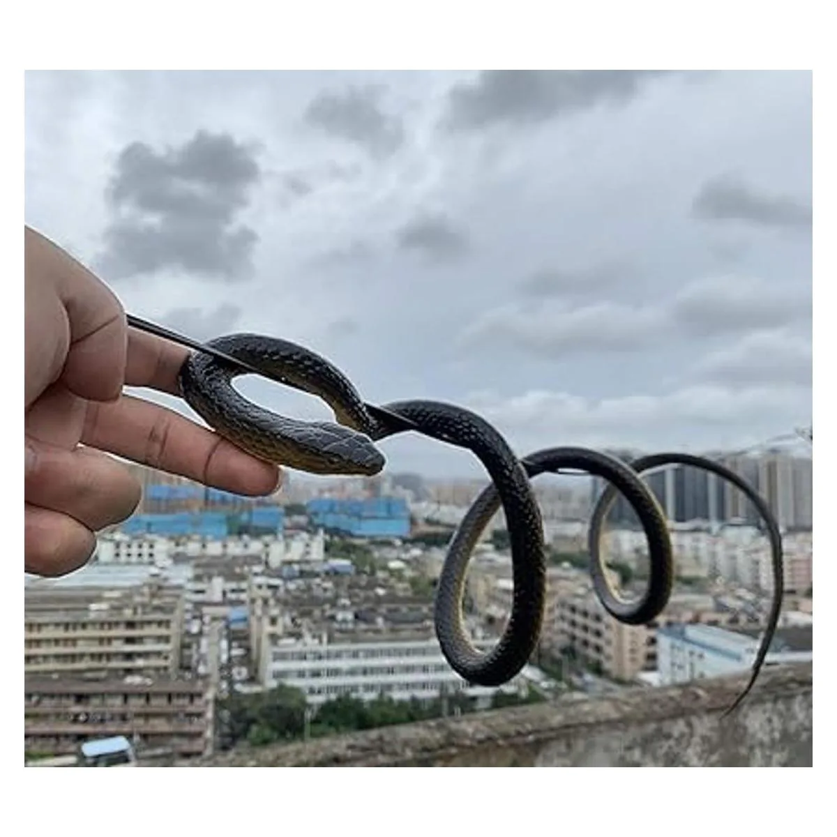 Serpientes de goma realistas: la serpiente falsa realista diseñada con un patrón de serpiente tiene una cabeza de serpiente vívida y ojos aterradores. Es muy imitación a la serpiente real, independientemente de su moldeado o sensación. A diferencia de otros productos ásperos, parece una serpiente real si no se observa cuidadosamente.
