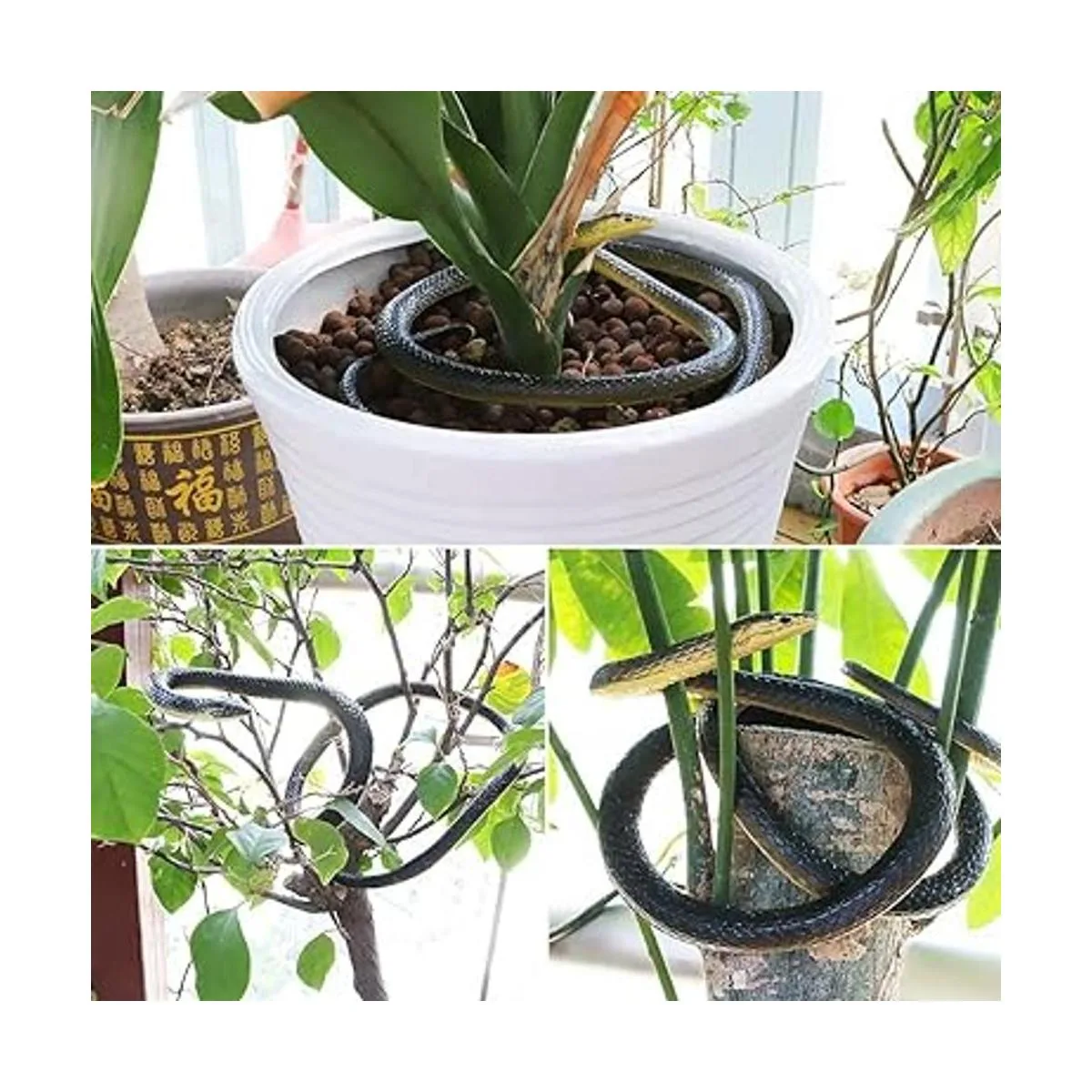 Juguetes de broma y accesorios de jardinería. Este es un juguete de engaño que puedes utilizar para engañar a tus amigos. Si te gustan las bromas, esta serpiente de juguete espeluznante es perfecta para ti. Estas serpientes realistas se pueden utilizar para proteger tu jardín. Envuélvelo alrededor de una rama de árbol o ponlo en la hierba, esto ayuda a ahuyentar pájaros, ratones, etc.