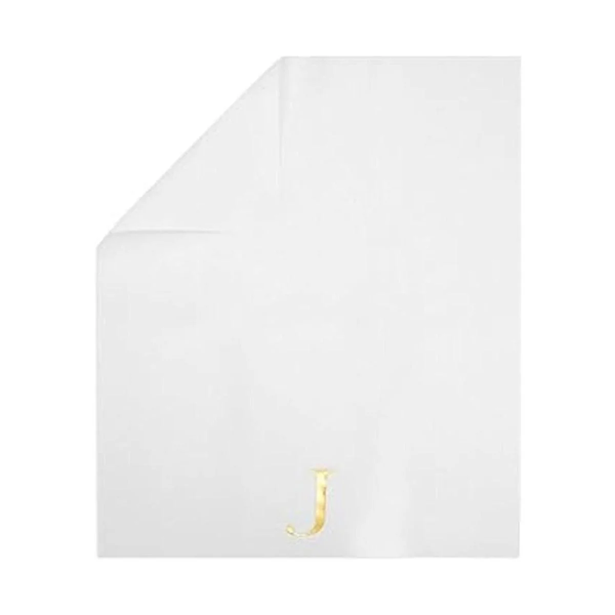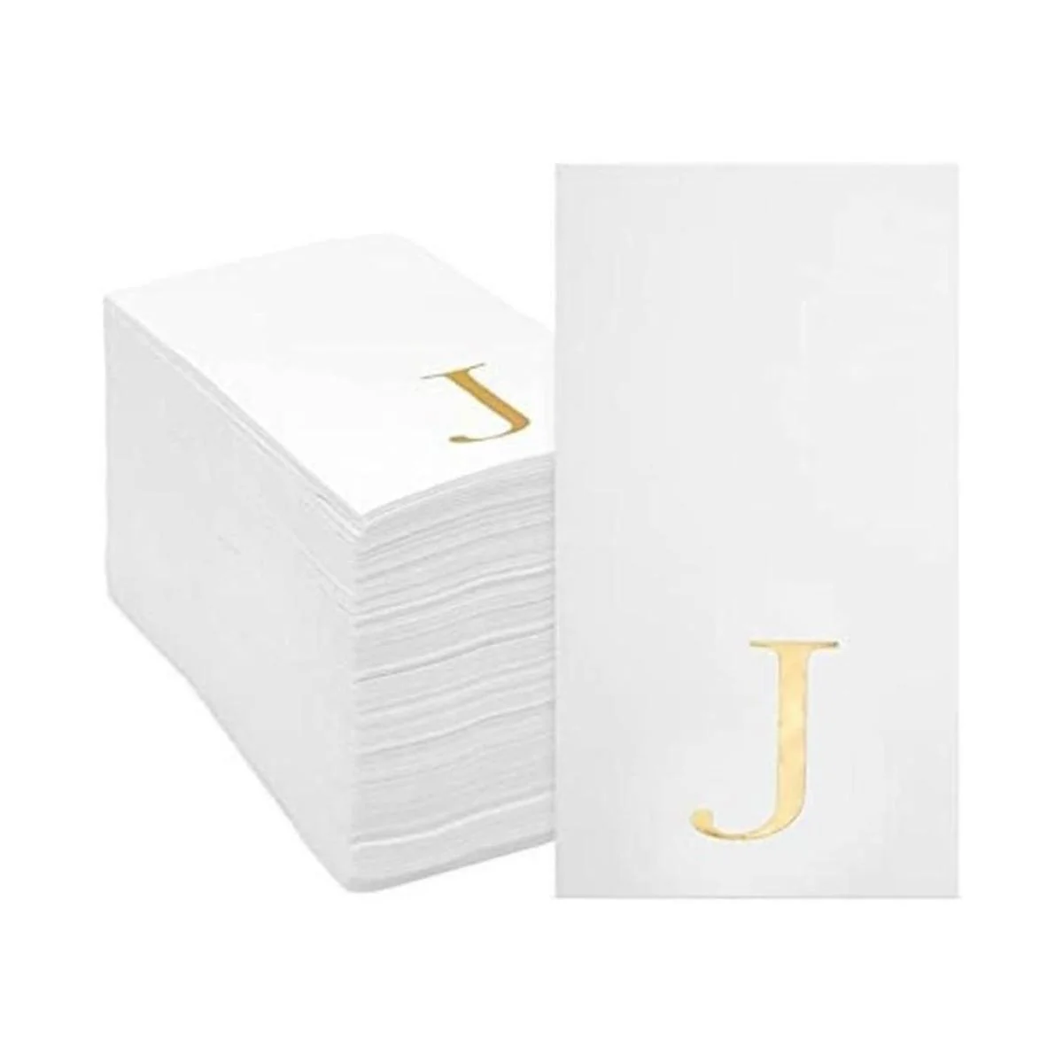 Servilletas de papel con monograma blanco de la letra J con inicial dorada 4 x 8 pulgadas, paquete de 100 unidades