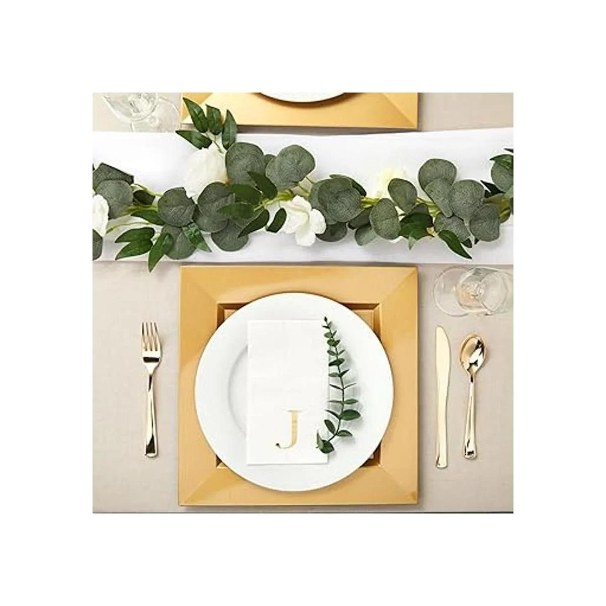 Protege tus superficies: coloca las servilletas blancas con monograma en las mesas de comedor y postre para mantenerlas limpias y libres de derrames no deseados y accidentales