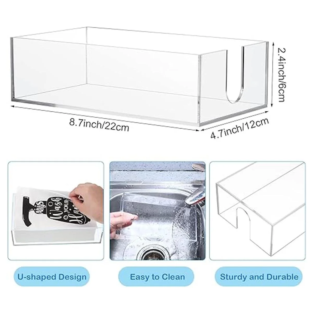 Bandeja acrílica: el soporte transparente para servilletas está hecho de material acrílico de calidad y tiene una abertura en forma de U en un lado para que puedas sacar fácilmente una servilleta, y el estante transparente te permite comprobar fácilmente el número de servilletas y llenarlas a tiempo