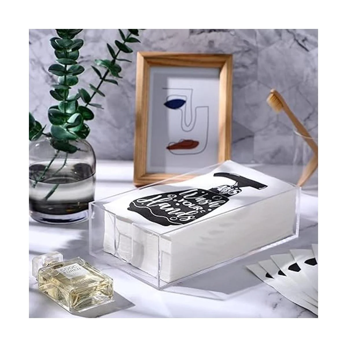 Servilletas desechables y servilletero de acrílico, paquete de papel desechable, 100 piezas, soporte transparente para toallas de invitados, soporte para toallas de mano para baño, sala de invitados, fiesta, toalla decorativa