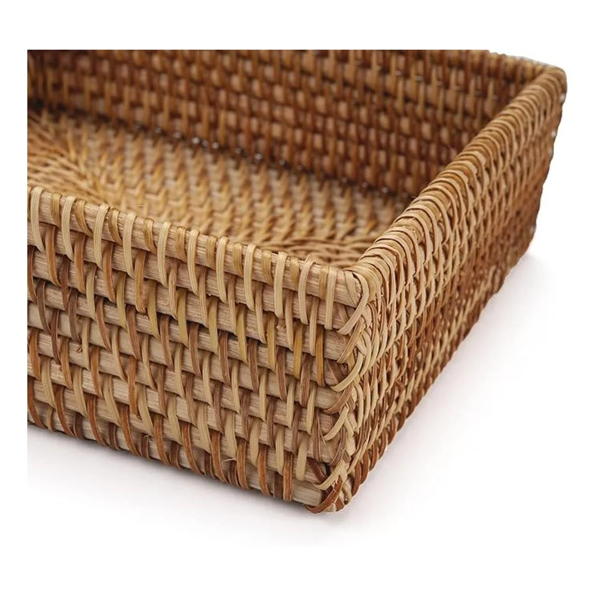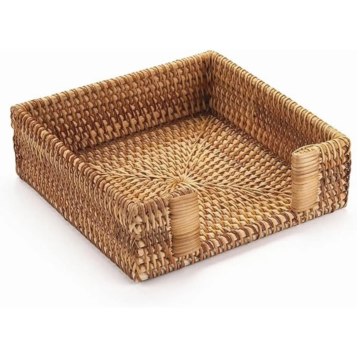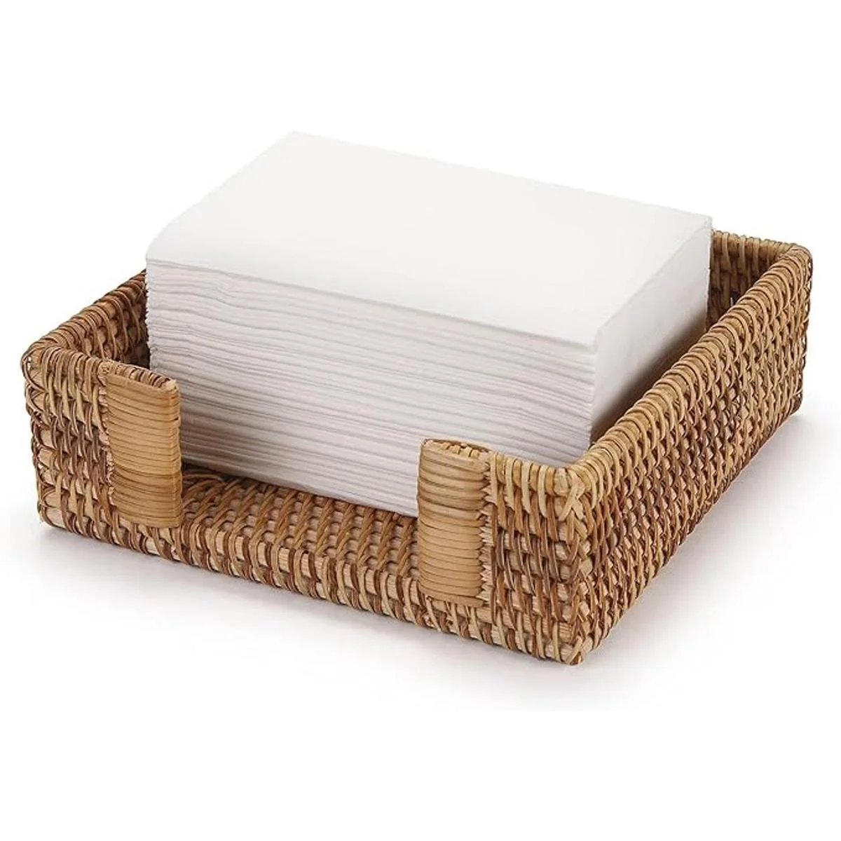 Servilletero cuadrado de ratán, 7.5 x 7.5 x 2.5 pulgadas, bandeja de servilletas de mimbre, soporte de toalla de invitados tejido para restaurante, cocina y baño