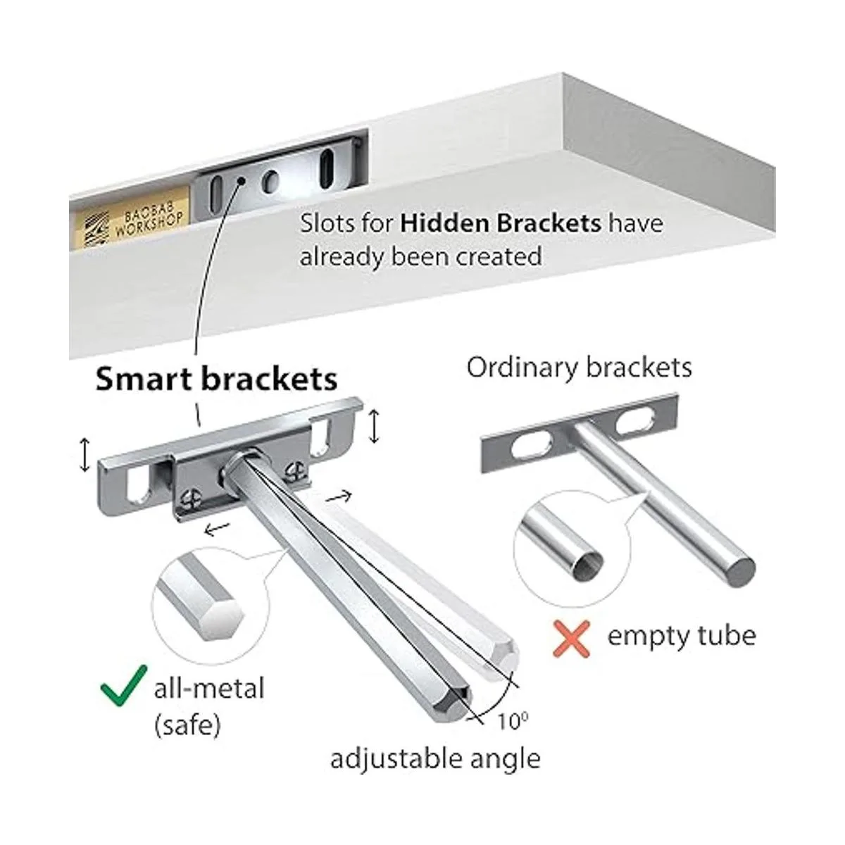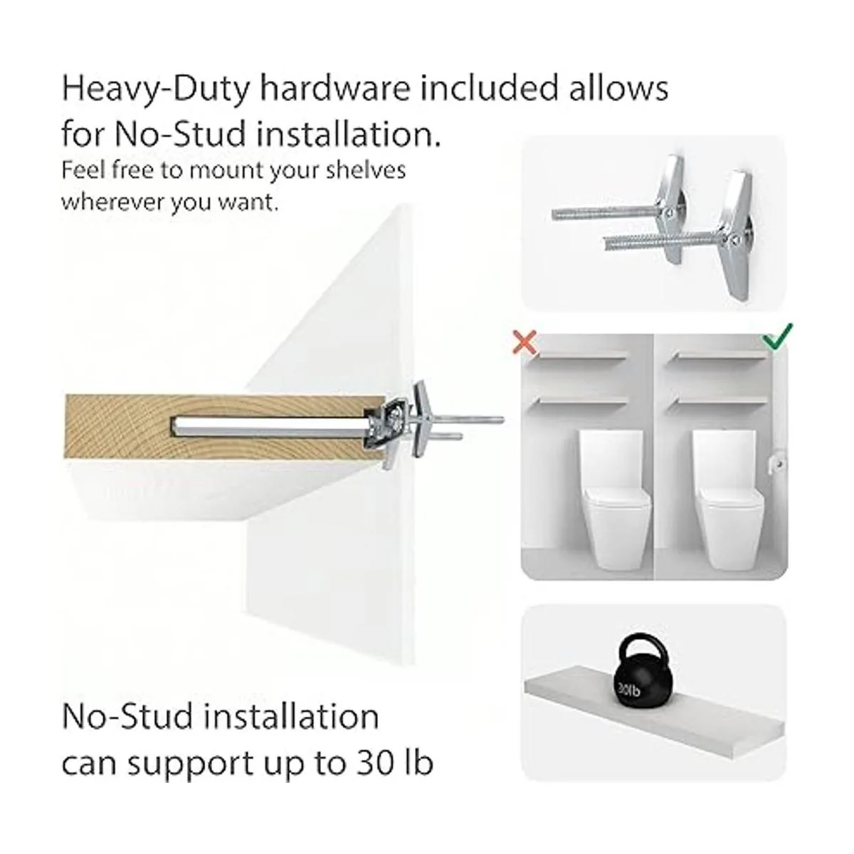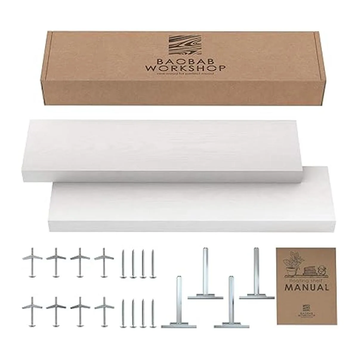 Fácil instalación: el juego de 2 estantes flotantes viene con soportes ocultos galvanizados de acero inoxidable, tornillos de fiador para pared de yeso y un simple manual de instrucciones para ayudarte a instalarlos idioma español no garantizado.