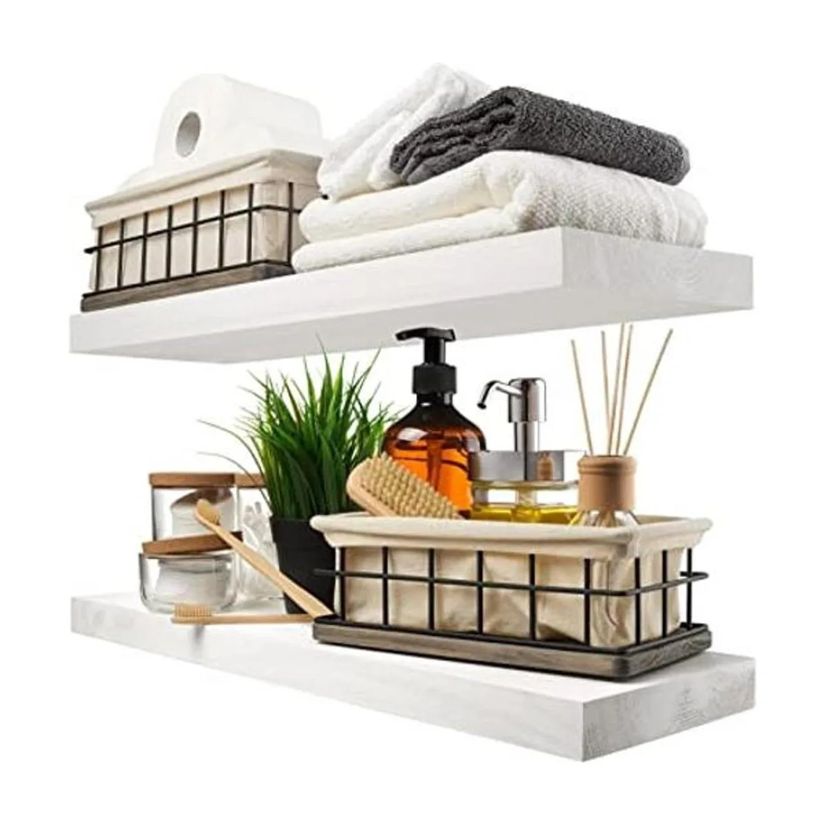 Estantes flotantes modernos: con un cuerpo de madera maciza, resistente, con revestimiento de cera, nuestros estantes flotantes rústicos son resistentes a la absorción de humedad y adecuados para usar en el baño.