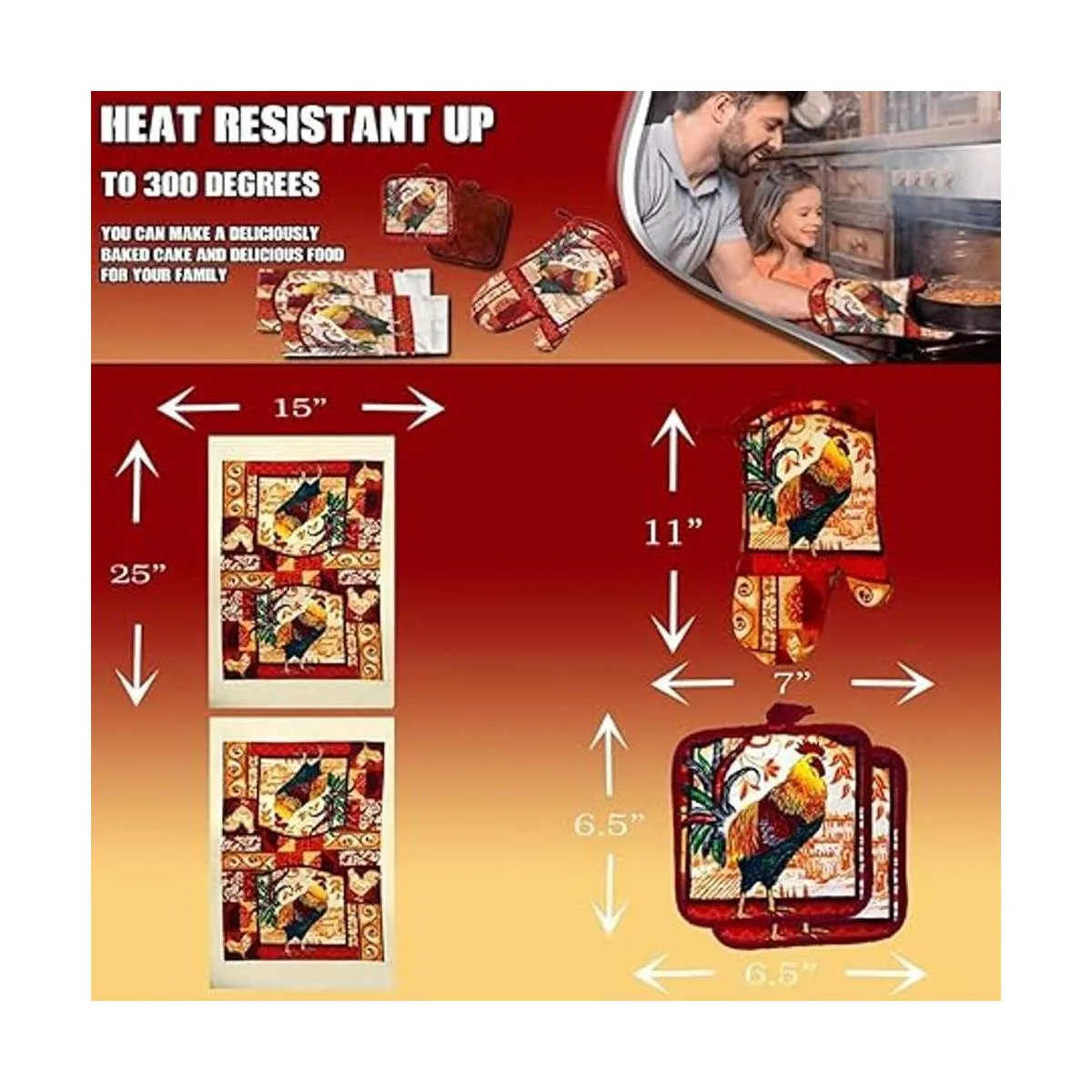 Incluye: 2 paños, 2 manoplas, 1 guante de horno.