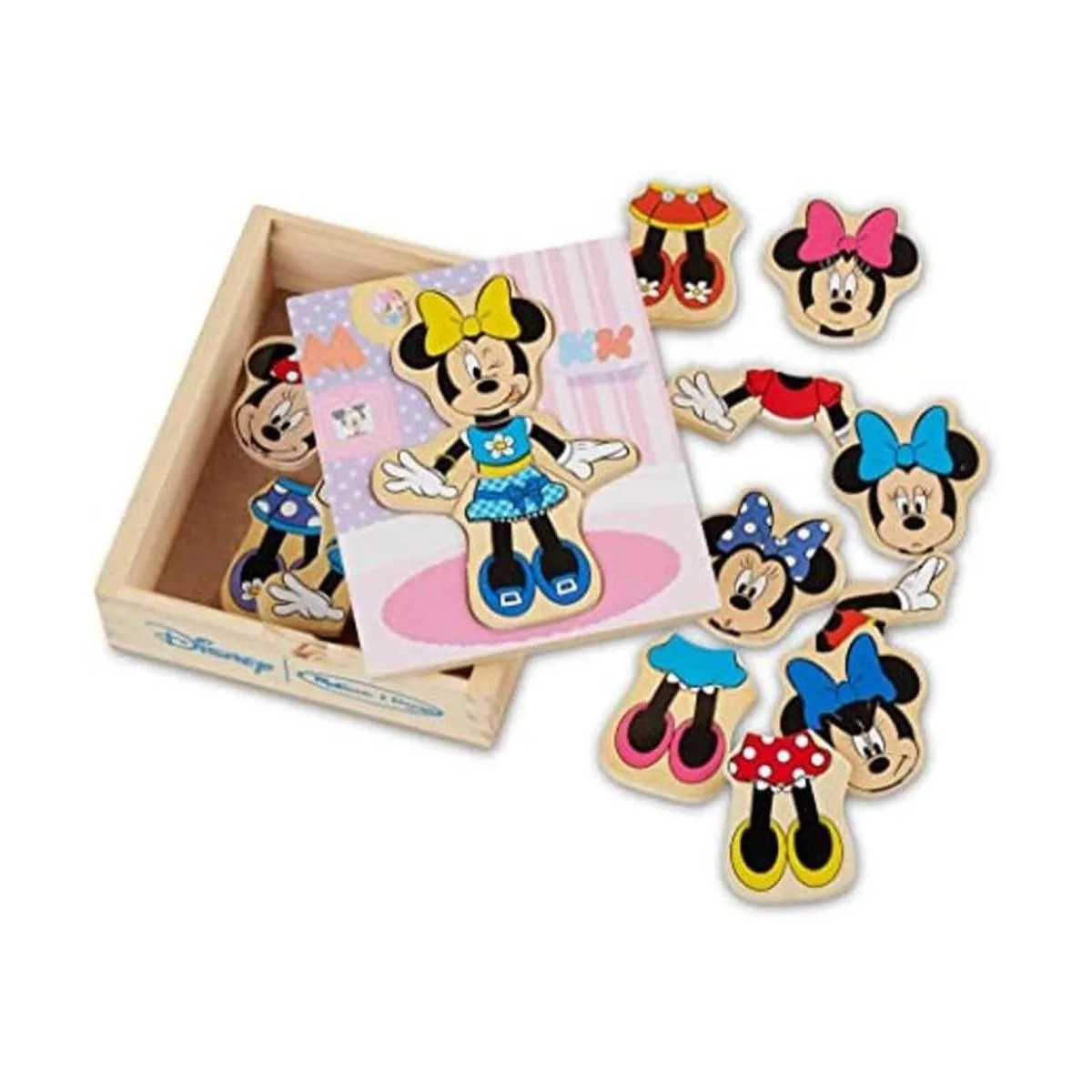 Set de madera Mix and Match para vestir personajes, Minnie Mouse de Disney 18 piezas, de Melissa Doug