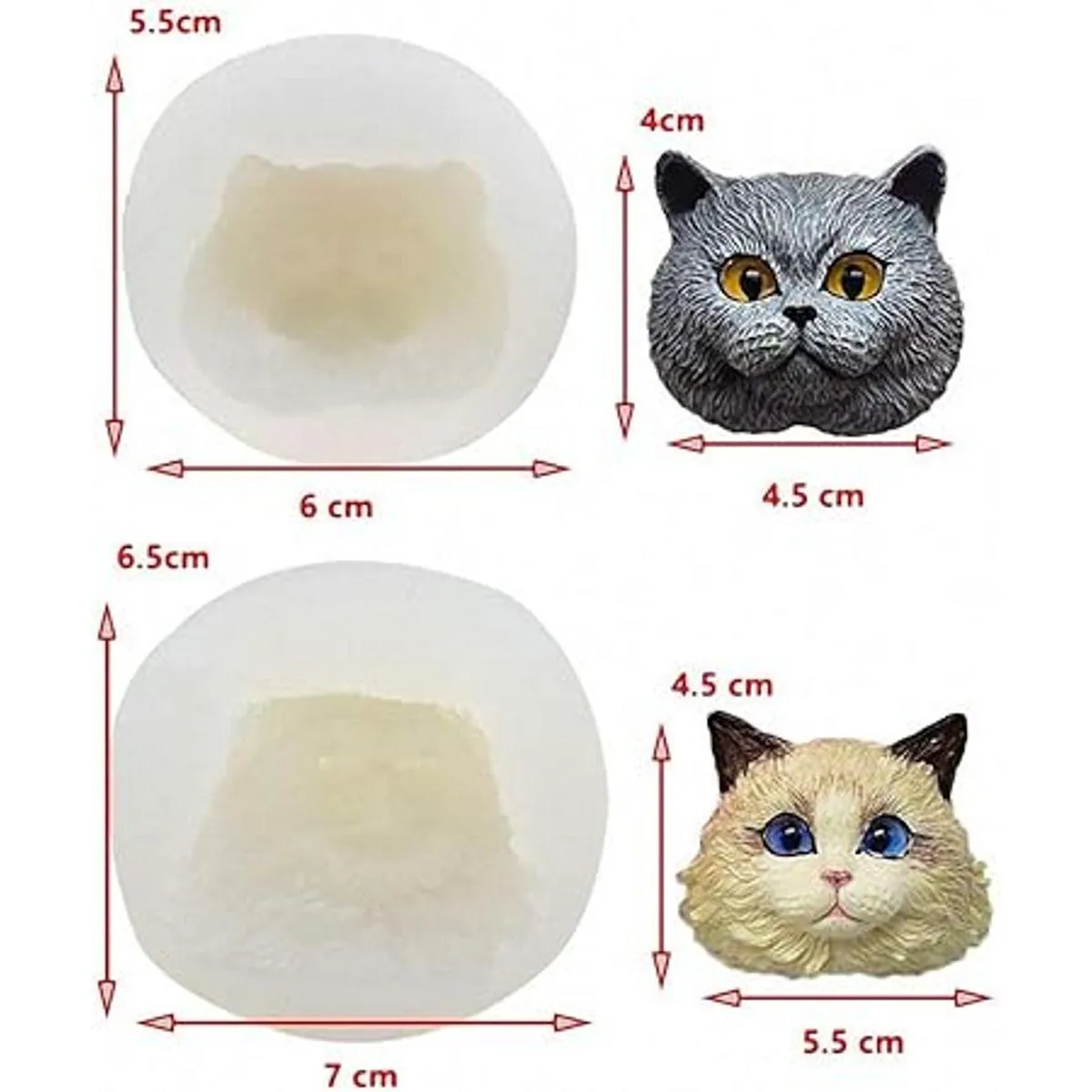 Set of 2 Pet Cat Silicone Resin Molds, British Shorthair Ragdoll Cat Kitty Chocolate Candy Fondant Mold Cake Decorating Tool Making Candle Soap Resin Plaster Crayon Wax Melt Mold