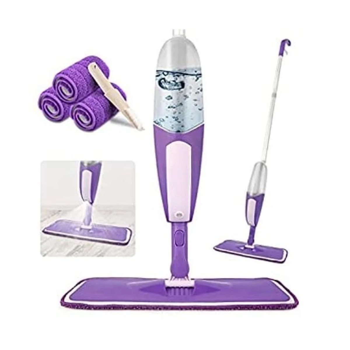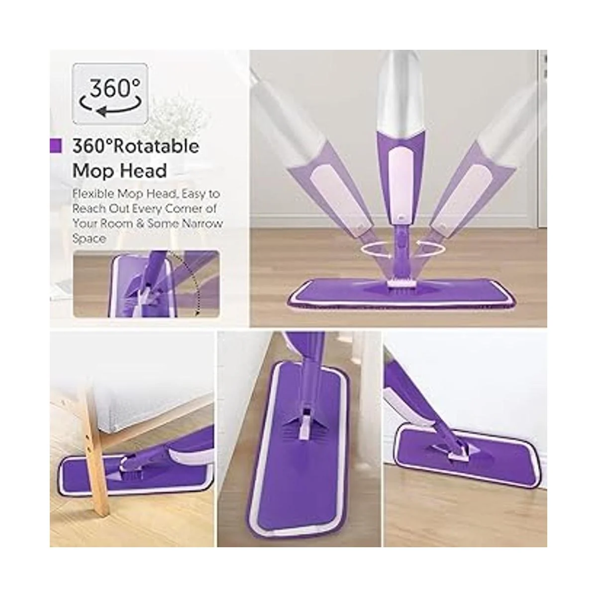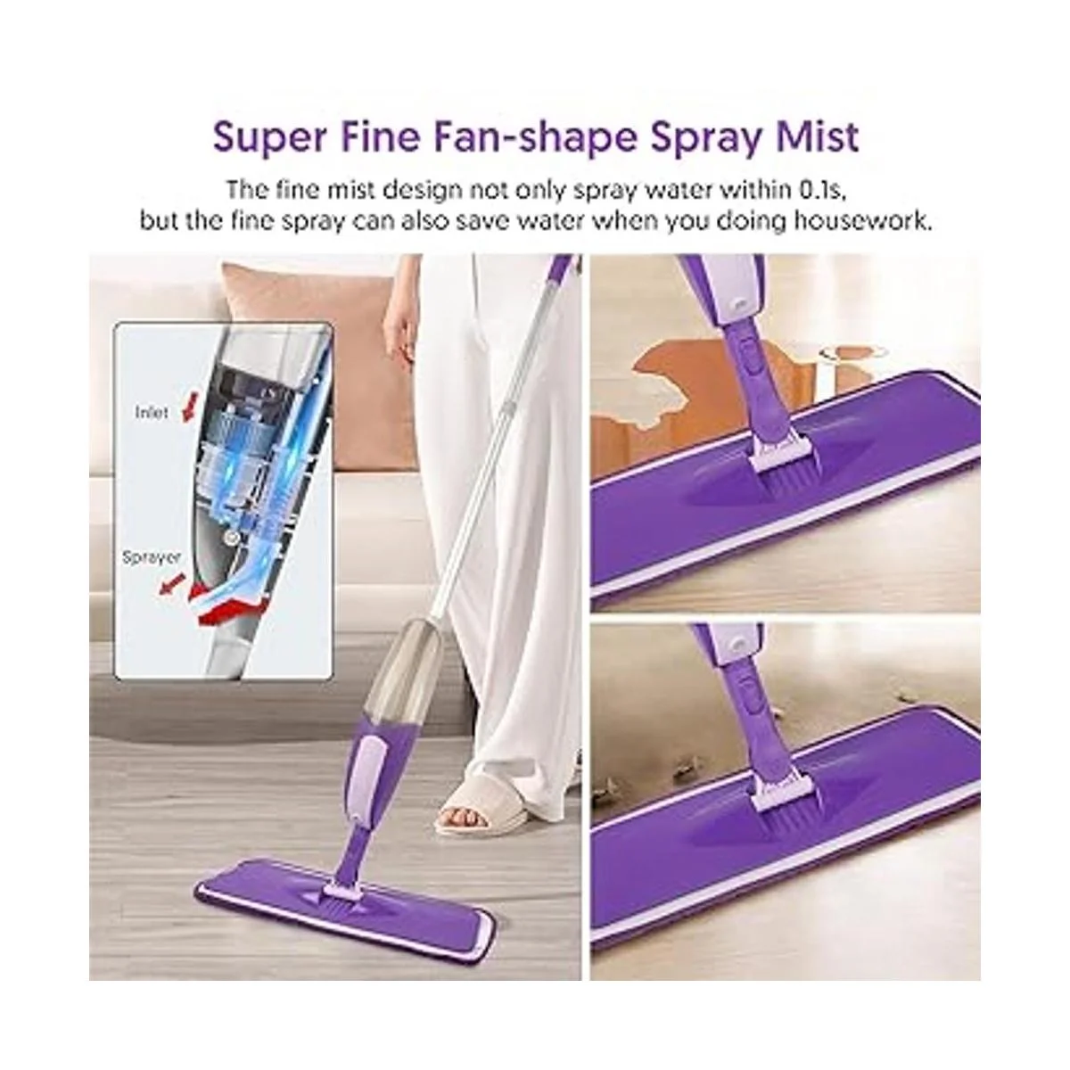 SEVENMAX Mopa en aerosol para limpieza de suelos, trapeador de suelo de microfibra con botella recargable de 18.6 fl oz, 3 almohadillas lavables, trapeador húmedo seco para limpiar madera dura, baldosas de cerámica de madera laminada