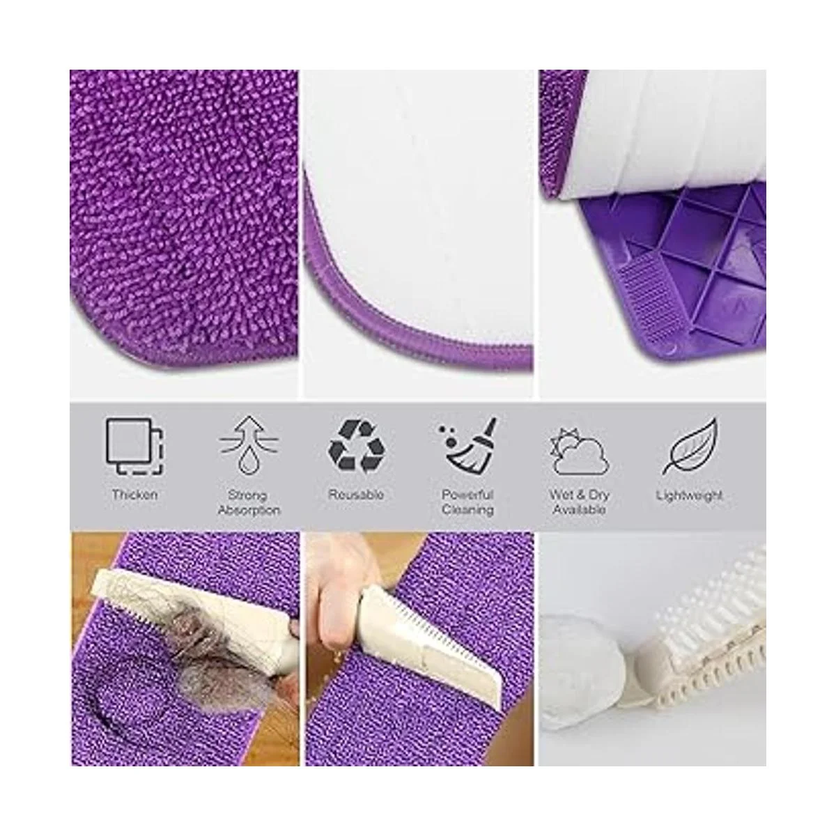 Eficiente fregona de limpieza en seco y húmedo: la fregona de suelo viene con 3 almohadillas de microfibra de alta calidad para reemplazo, que son suaves, absorbentes y descontaminantes. Las almohadillas de microfibra cuentan con millones de microfibras que pueden agarrar fácilmente la suciedad, el polvo, el pelo o la esponja; y un material grueso mejorado, absorbe el agua sucia rápidamente y no deja manchas. Perfecto para uso en seco y húmedo.