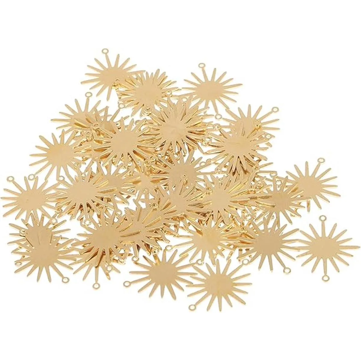 Sewroro 50 unidades de conectores de dijes de sol, dijes de latón conectores, forma de sol, colgantes para hacer joyas, pulseras, collares, dorados, 1.0 x 0.9 in