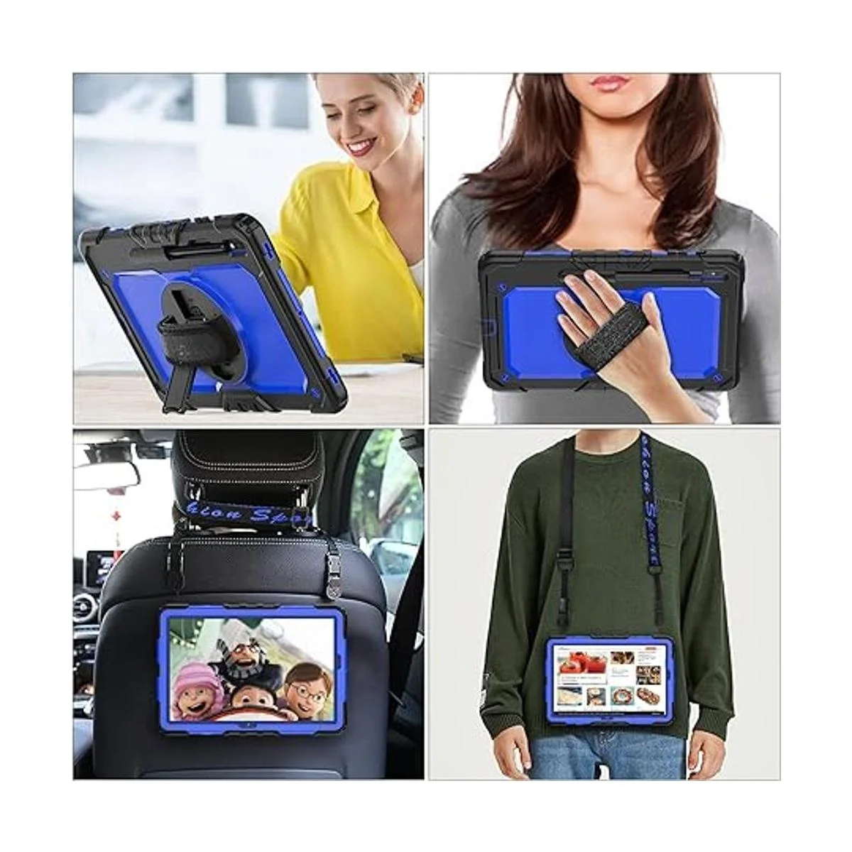 Correa de mano suave y correa de hombro portátil y soporte giratorio: proporciona la protección más segura y más comodidad cuando juegas o trabajas con tableta. Cuélgalo en cualquier lugar para un mejor entretenimiento, haz que tus manos estén libres. El soporte giratorio de 360 grados proporciona una visión multiángulo, con correa de mango suave, más fácil de usar tu tableta en tus viajes al aire libre, trabajo, juegos con niños.