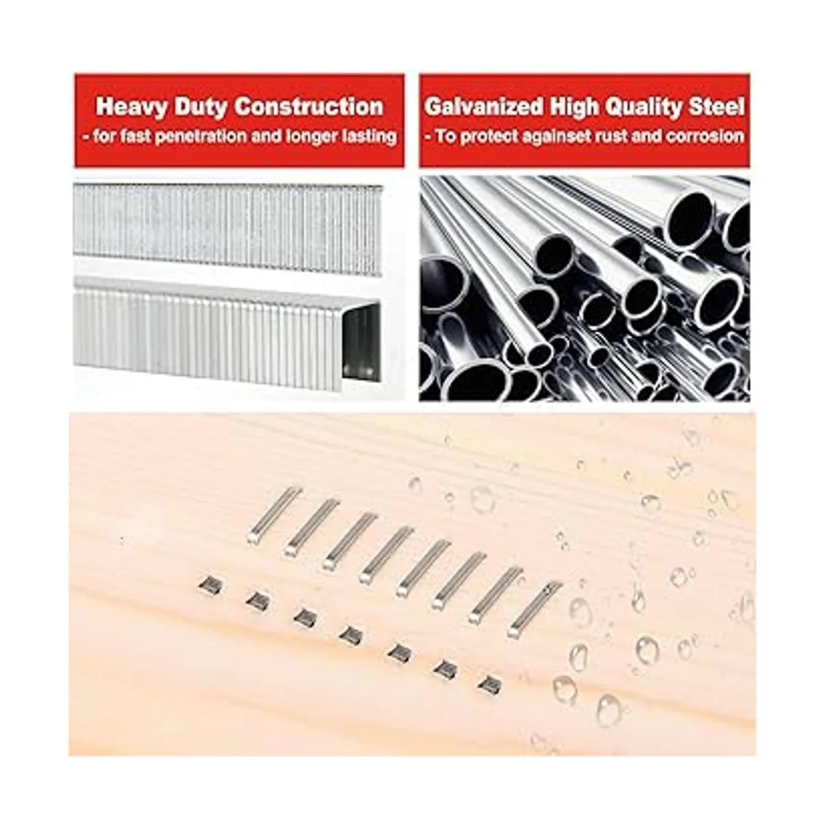 Amplia aplicación: perfecto para trabajos de grapado ligeros a pesados como aislamiento y envoltura, fieltro de techo, cableado de valla, pelado de clima, alfombra debajo de la colocación, tapicería, bricolaje y materiales de manualidades
