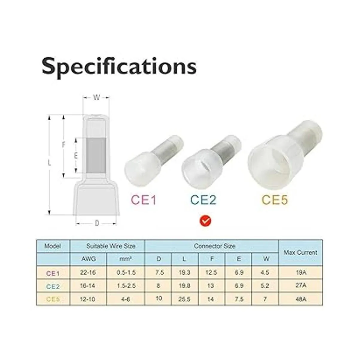 SHANFEILU Conector de crimpado de extremo cerrado CE2 con núcleo de aluminio, conector rápido, tapa de crimpado, terminales de extremo de alambre, 300 piezas, 1614 AWG