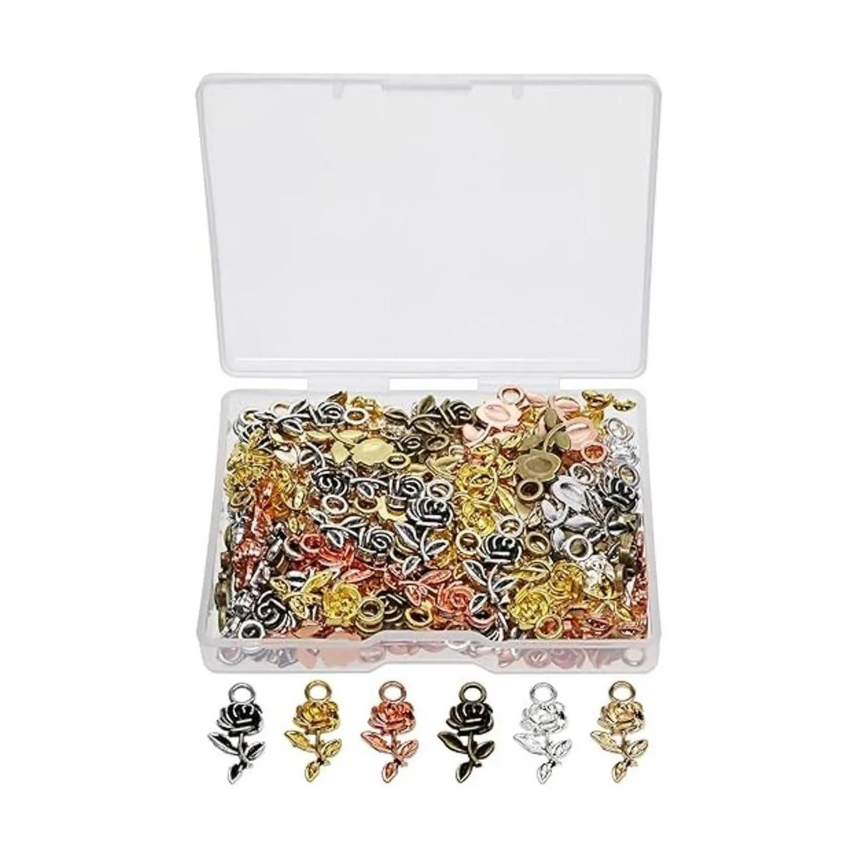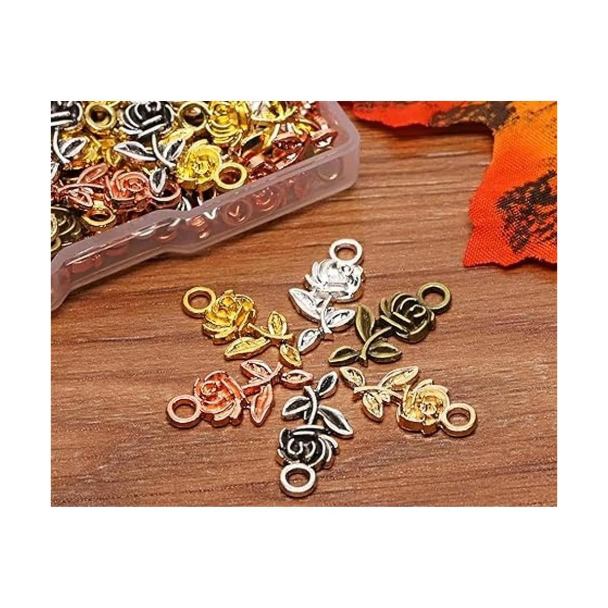 Shapenty 6 colores mini cuentas de metal a granel para bricolaje Craft llavero collar, colgantes, pulseras, pendientes, joyería, resultados de cumpleaños, Navidad, regalo de San Valentín rosa, 120 unidades