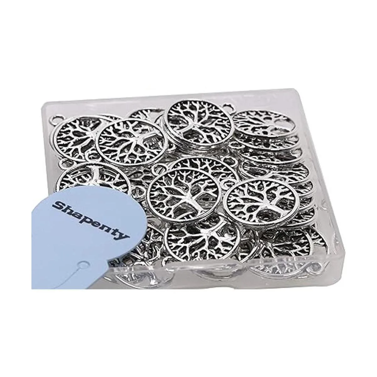 Shapenty Dijes redondos de metal para árbol de la vida, abalorios a granel, accesorios de fabricación para manualidades, pulseras, collares, aretes, llavero, 50 unidades, Metal