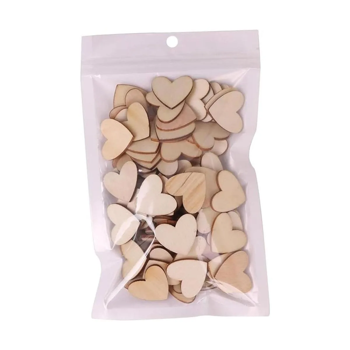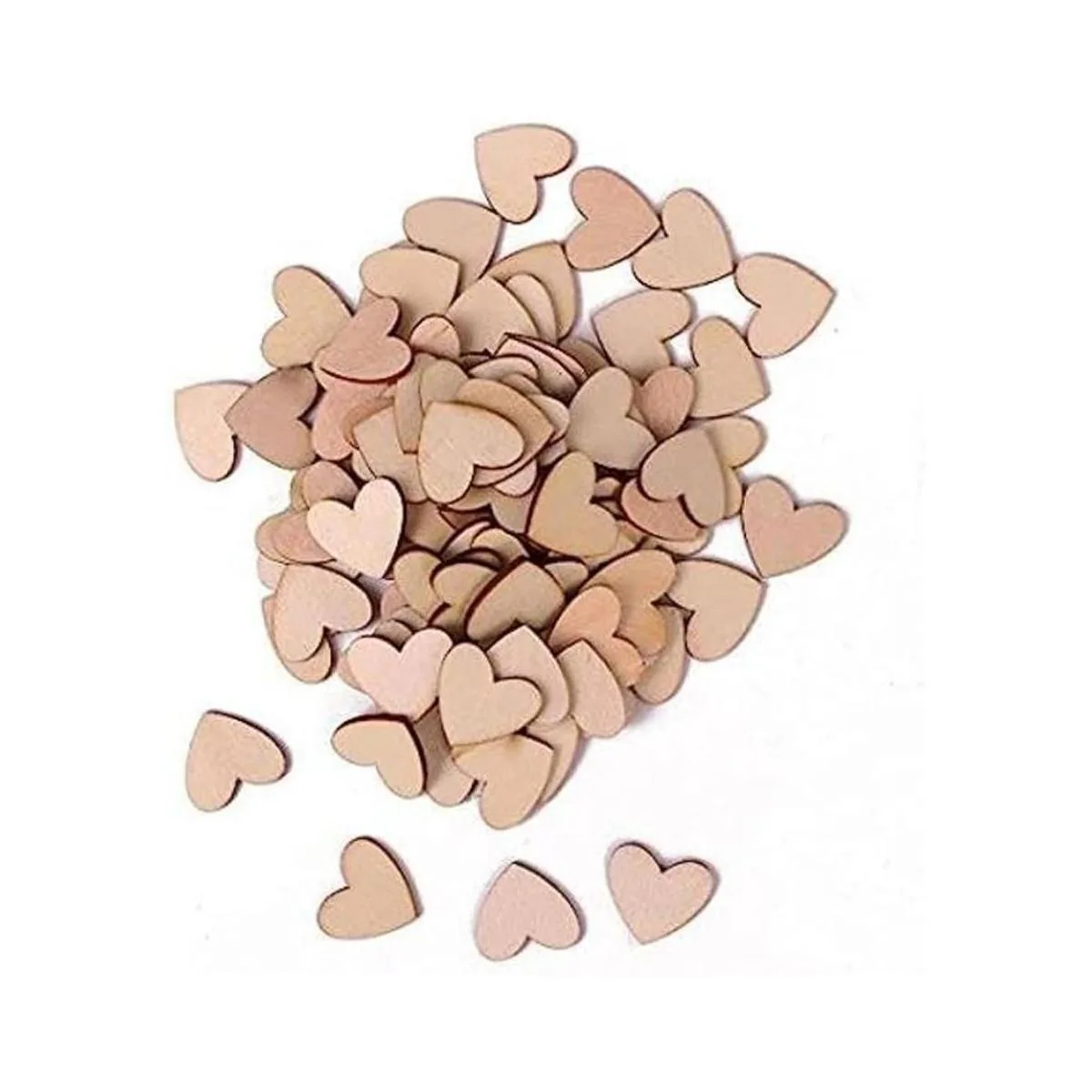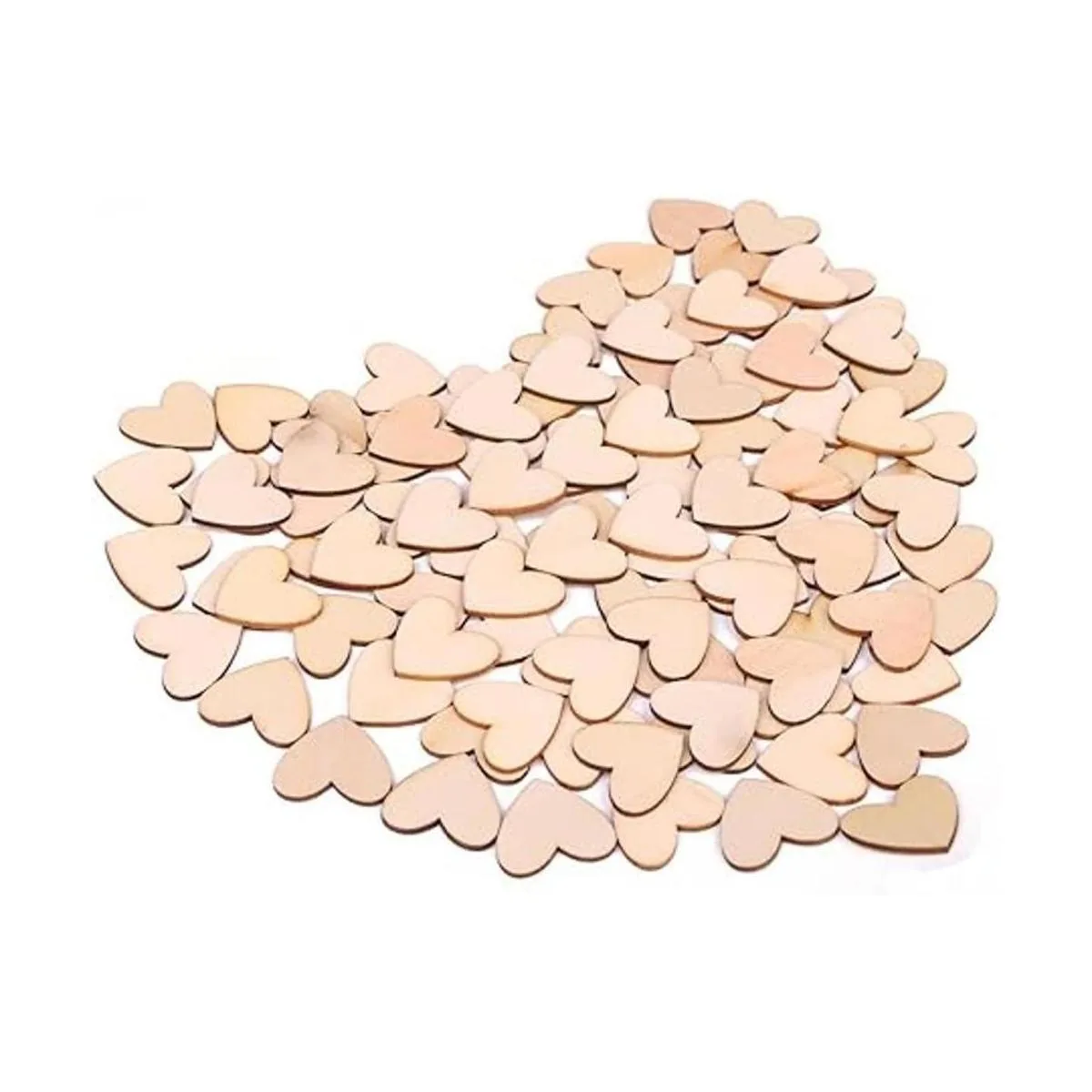 Shapenty Discos de madera en blanco sin terminar en forma de corazón, piezas de manualidades para adornos de boda, adornos de fiesta de Navidad, paquete de 100