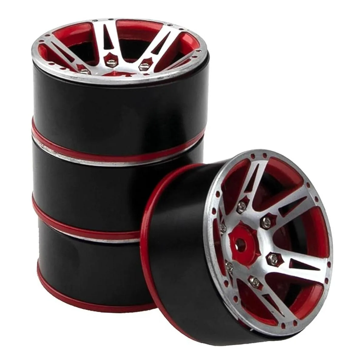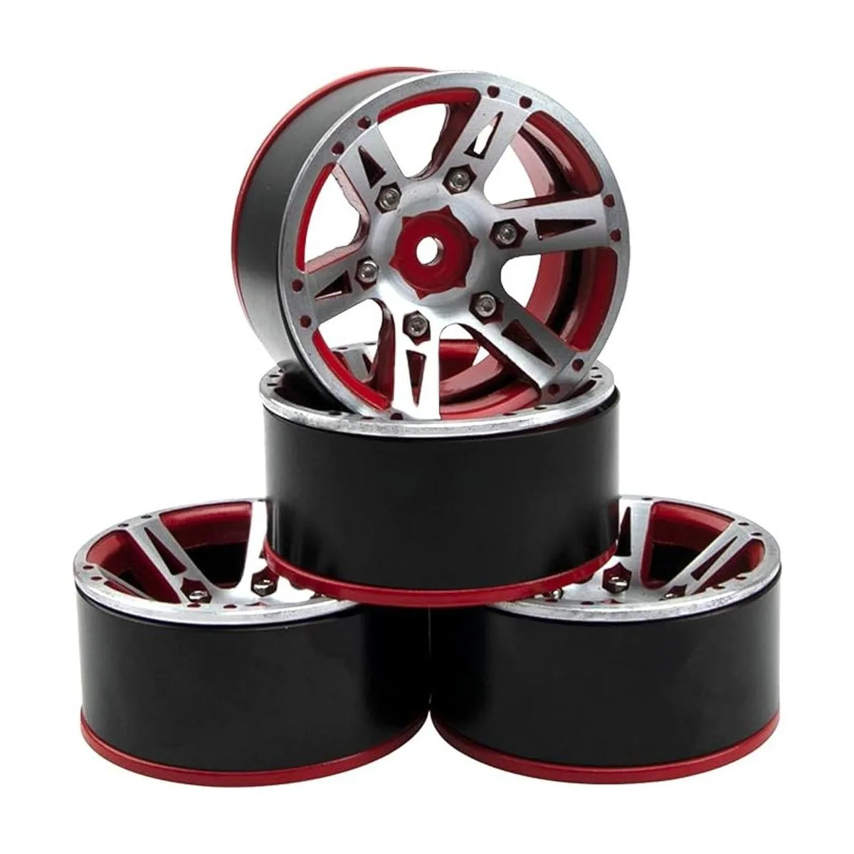 ShareGoo 4 llantas de metal de 4 piezas de 4 pulgadas de ancho, 1.024 in, 6 radios, compatible con Axial SCX10 90046 Wraith TRX4 D90 Tamiya CC01 110 RC Crawler