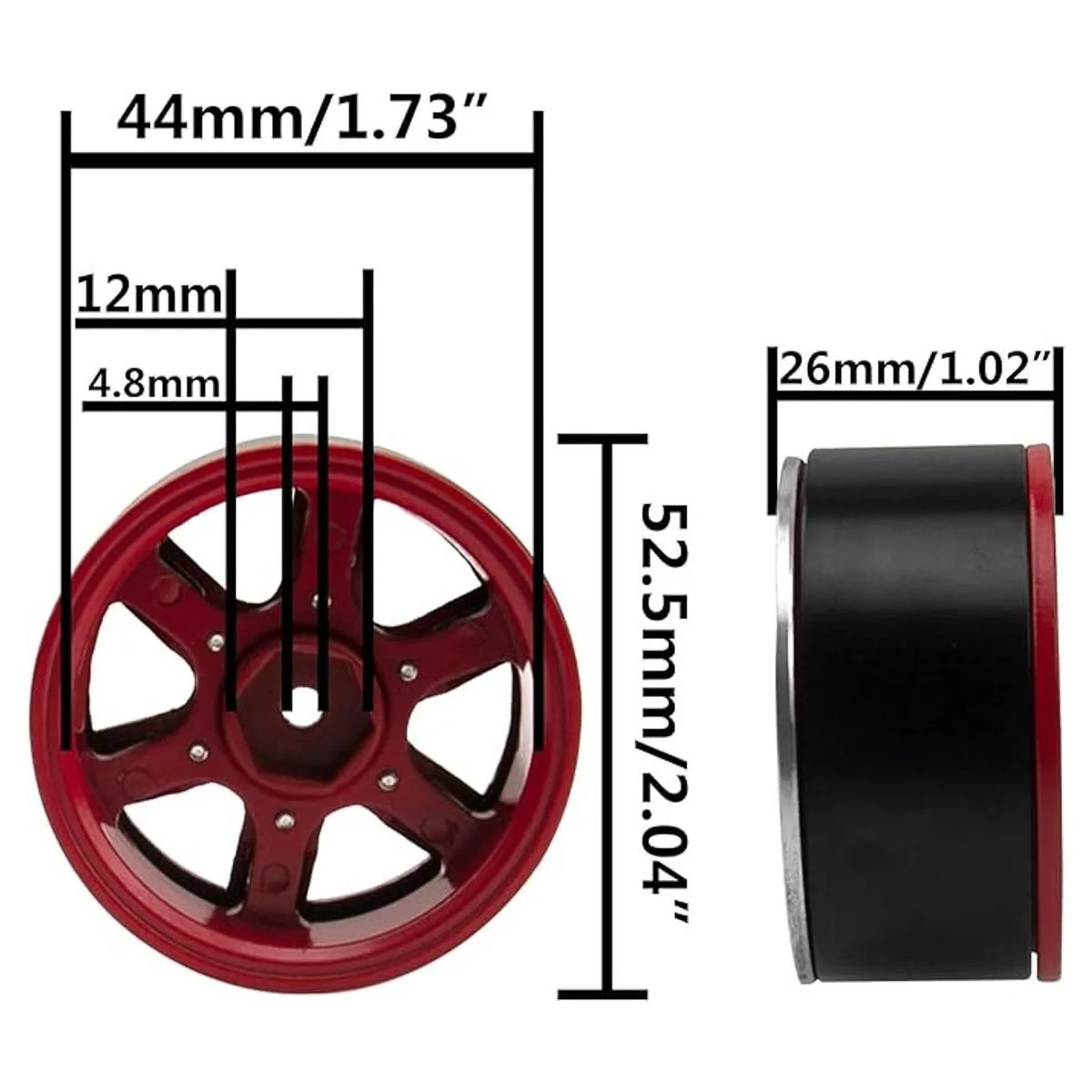 La llanta de 1.9 pulgadas está hecha de metal de alta calidad, CNC para alta precisión. Diseño de aspecto de 5 radios, hace que tu coche RC se vea más atractivo.
