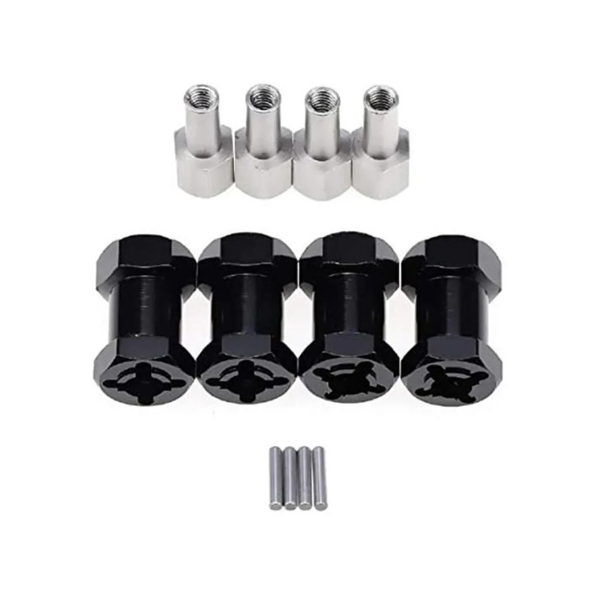 ShareGoo Juego de 4 adaptadores hexagonales para rueda de aluminio de 0.472 in 0.787 in, extensión de desplazamiento, hexagonal, compatible con 110 RC Crawler Axial Scx10 D90, color negro