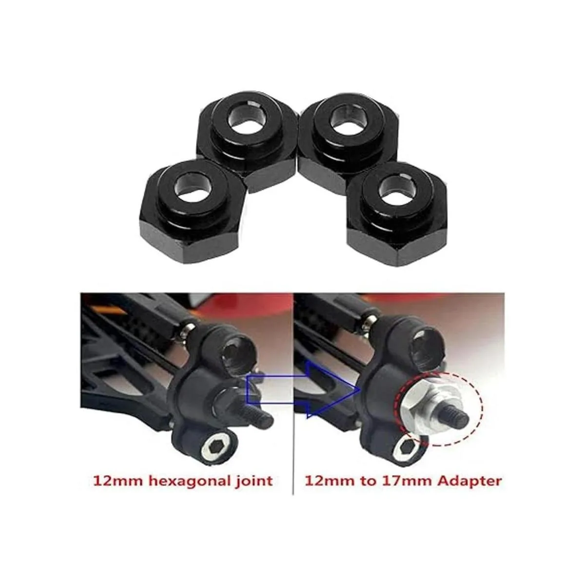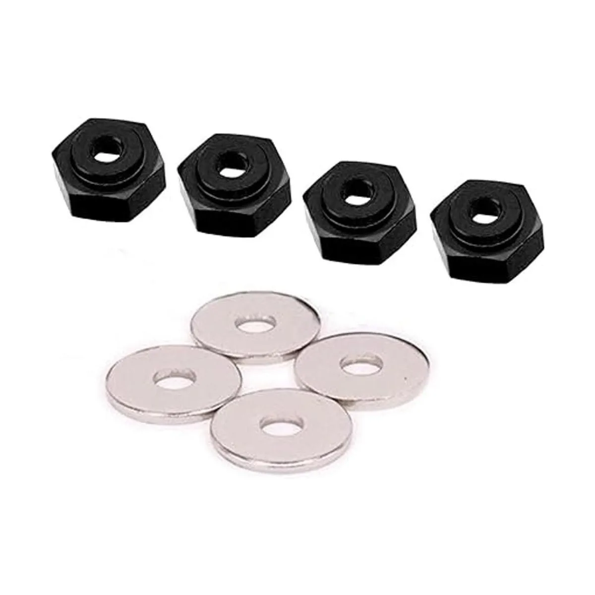 ShareGoo Juego de 4 adaptadores hexagonales para ruedas de metal de 0.472 in a 0.669 in para Tamiya Axial RC4WD Traxxas HPI Himoto HSP Losi Kyosho RC 110 OnRoad Car Buggy Truck Neumáticos, color negro