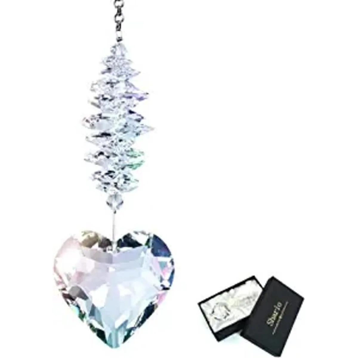 Incluye: colgante de cristal transparente cristal K9 de corazón transparente de 1.77 pulgadas cadena de acero inoxidable de 7 pulgadas.