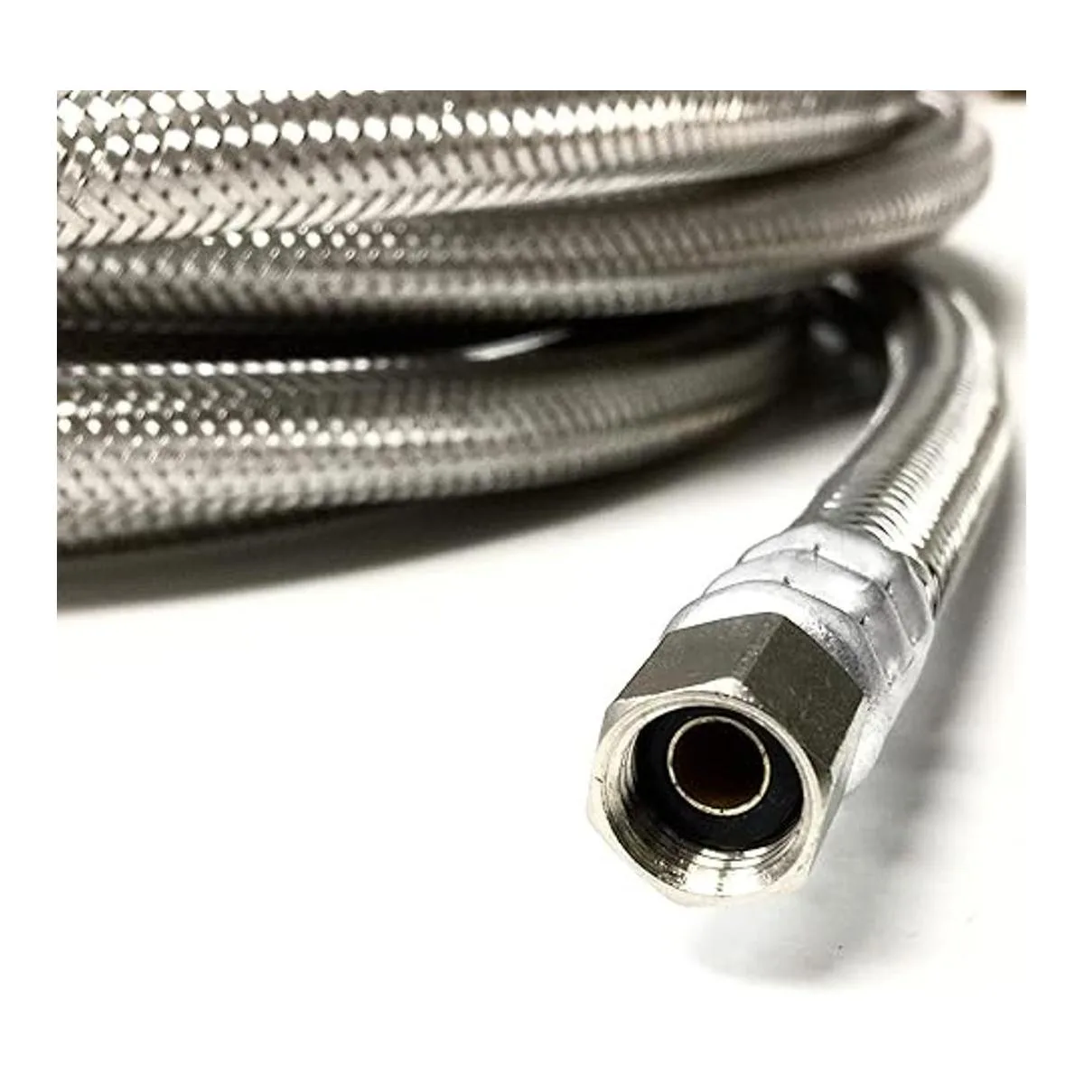 Una manguera trenzada de acero inoxidable 304 de 15 pies con conexión compuesta de 1/4 pulgadas x 1/4 pulgadas.