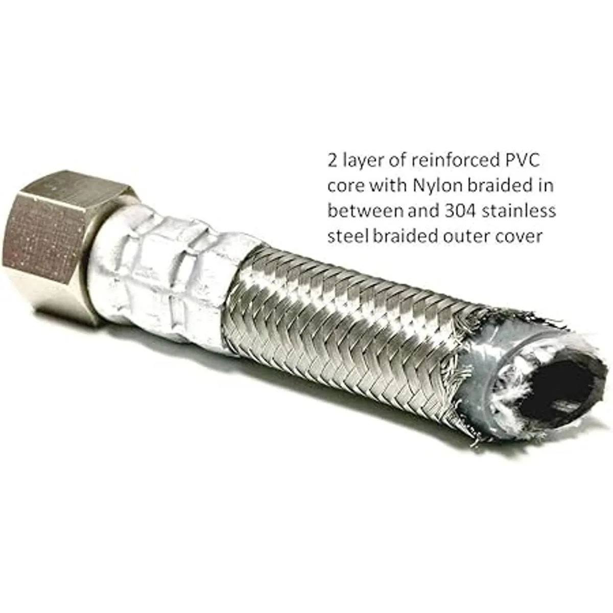A prueba de ráfagas: diseñadas para durar, nuestras mangueras utilizan acero inoxidable 304 verdadero para una cubierta protectora exterior trenzada que dura increíblemente mucho tiempo para una protección eficaz contra el óxido y la explosión. Algunas otras mangueras no utilizan acero inoxidable 304 para la cubierta trenzada y podrían resultar en una explosión uniforme de óxido.