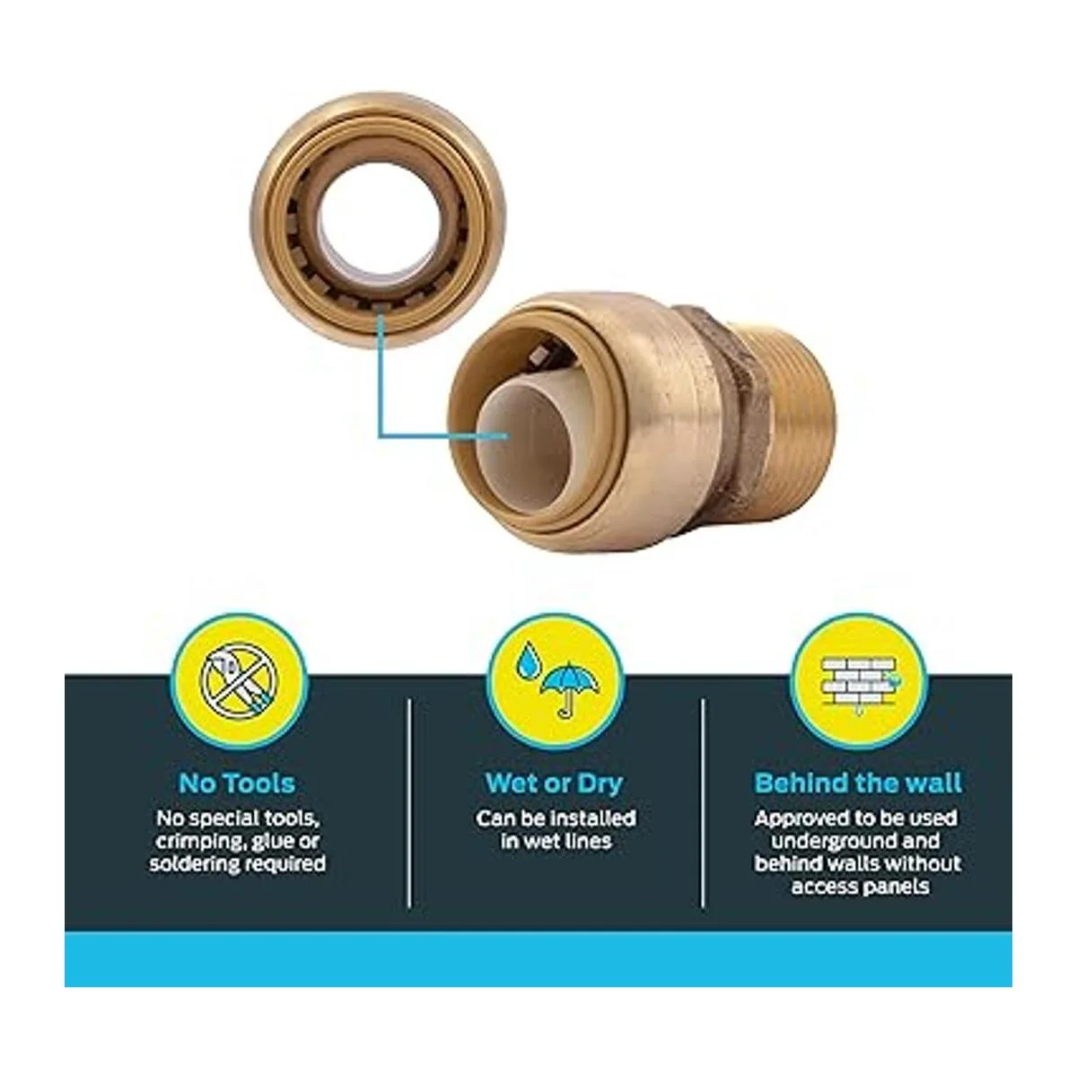 SharkBite Adaptador MNPT Bullnose de 34 pulgadas x 12 pulgadas, accesorio de fontanería de latón a presión para conectar, tubo PEX, cobre, CPVC, PERT, HDPE, U138LFA