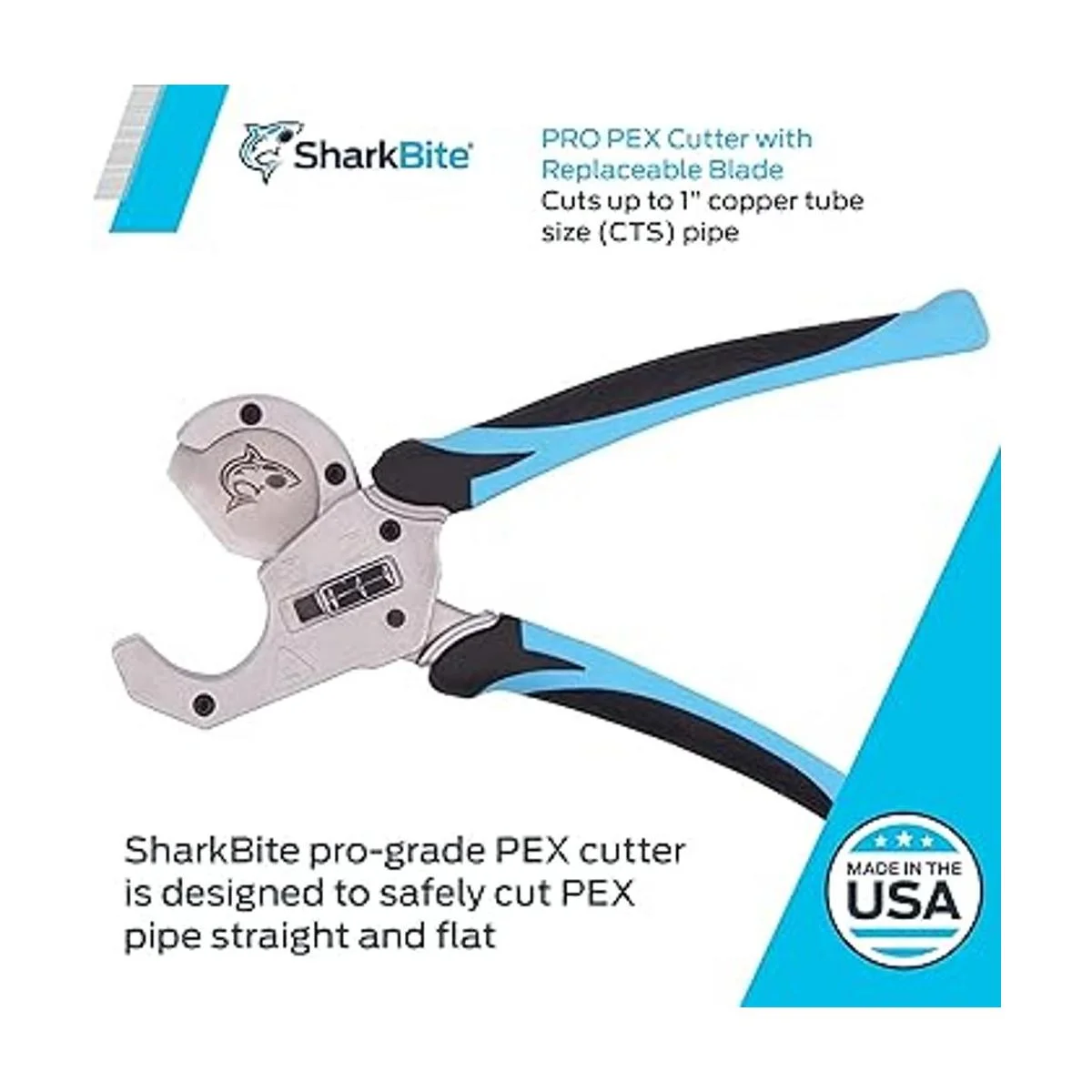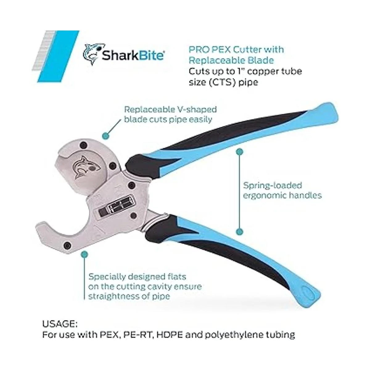 SharkBite Pro PEX Cortador de tubos con hoja reemplazable, PEX, PERT, HDPE, tubo de polietileno, 25880