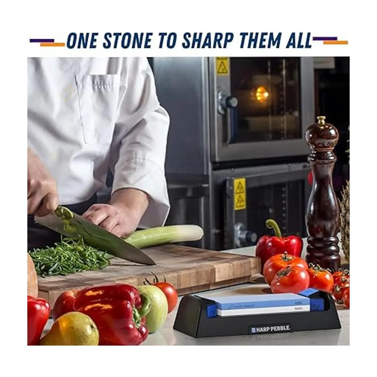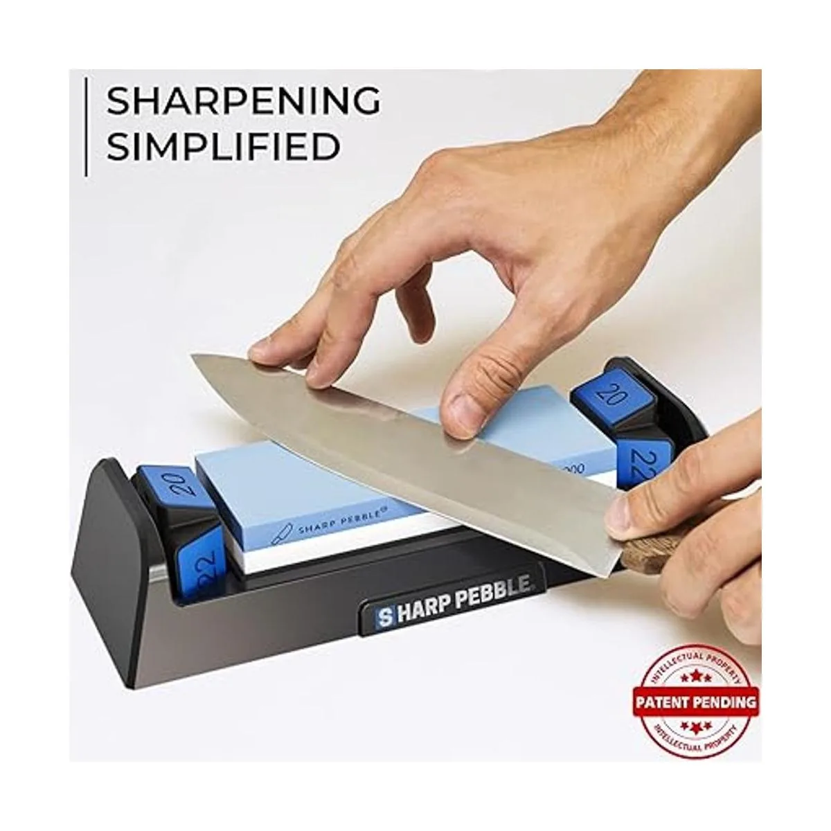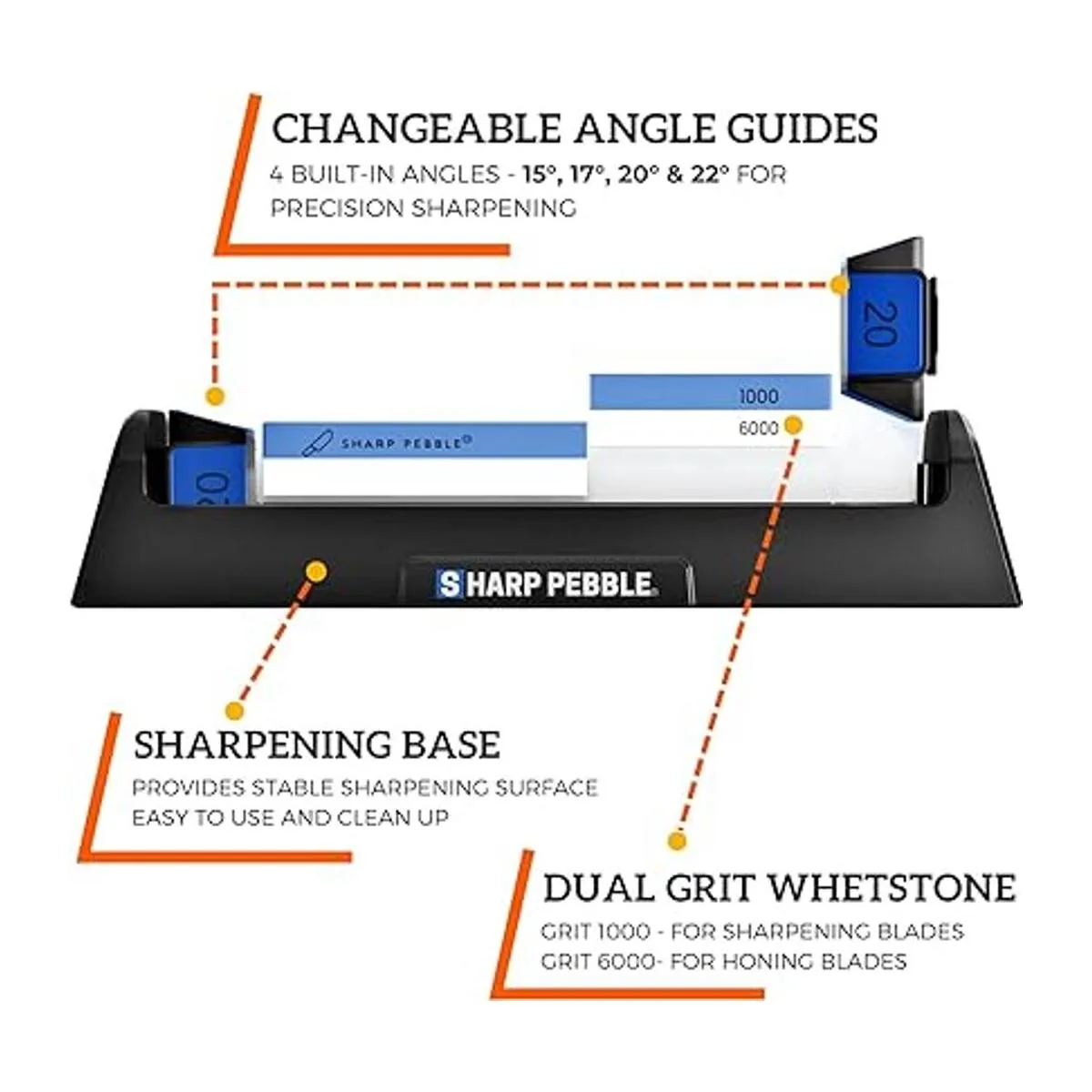 Sharp Pebble Kit de piedra afiladora de cuchillos, grano 10006000 guías de ángulo integradas con piedra húmeda de 15172022 grados, juego de piedra afiladora de cuchillos profesional con base de plástico