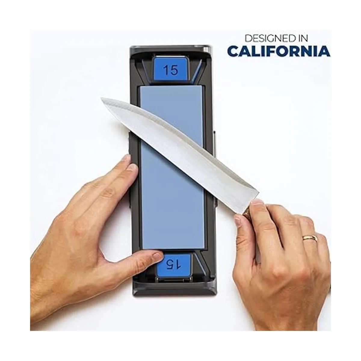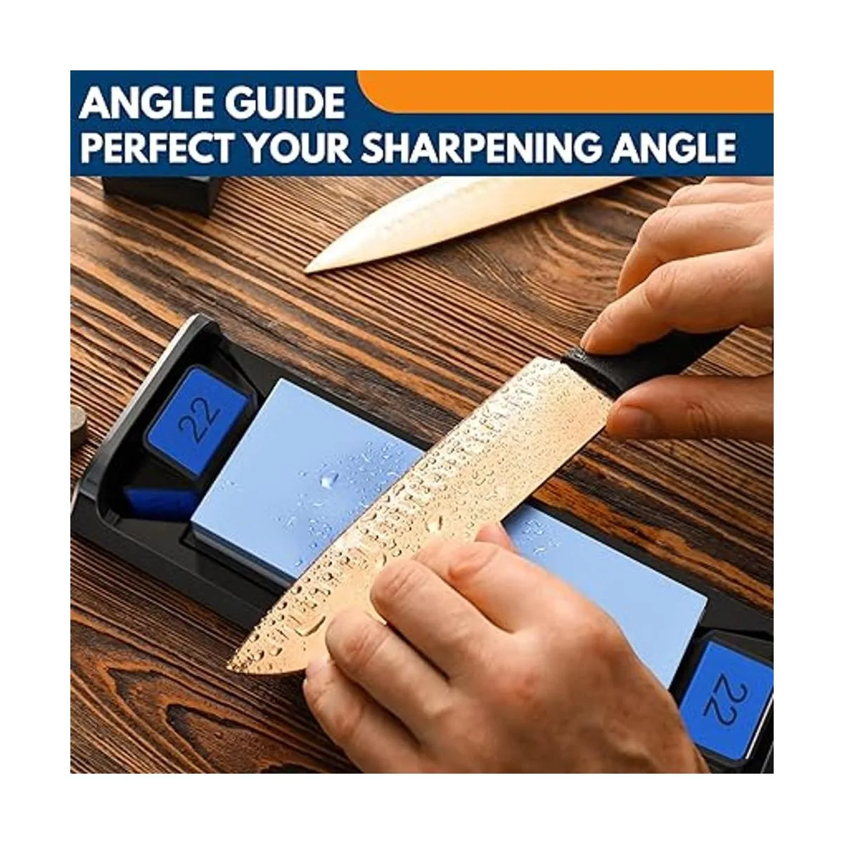 Diseño de última generación: no todas las piedras de afilado son iguales. Este juego de afiladores de cuchillos de piedra de afilar está diseñado para un afilado ultra preciso. Las guías de ángulo de afilado se pueden ajustar a 15/17/20/22 o quitar, para afilar a mano alzada.