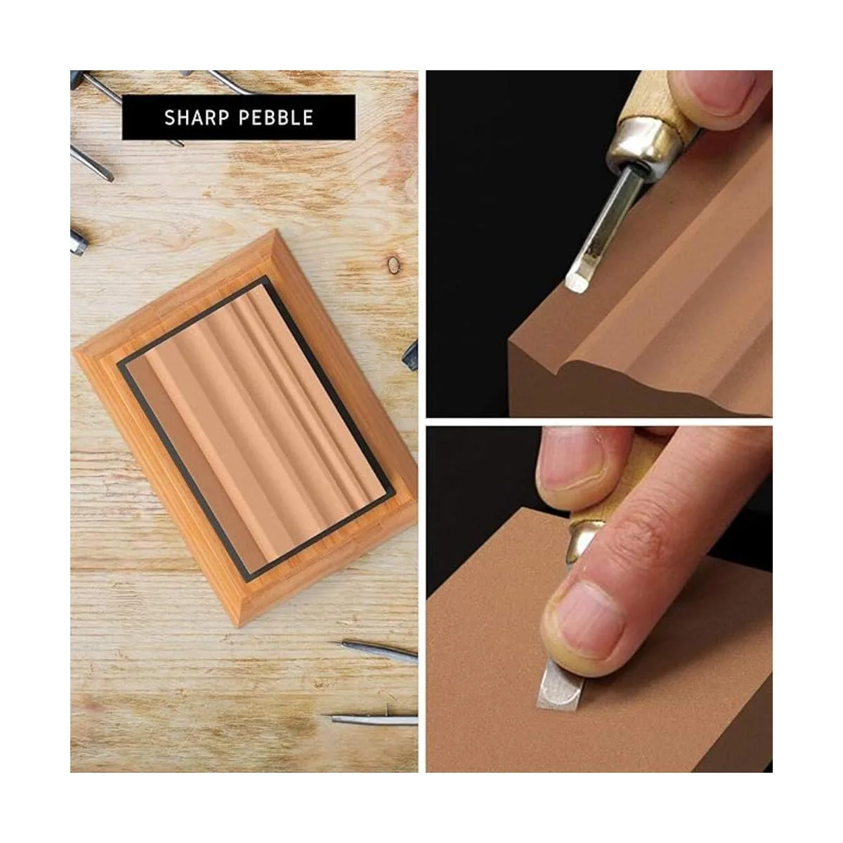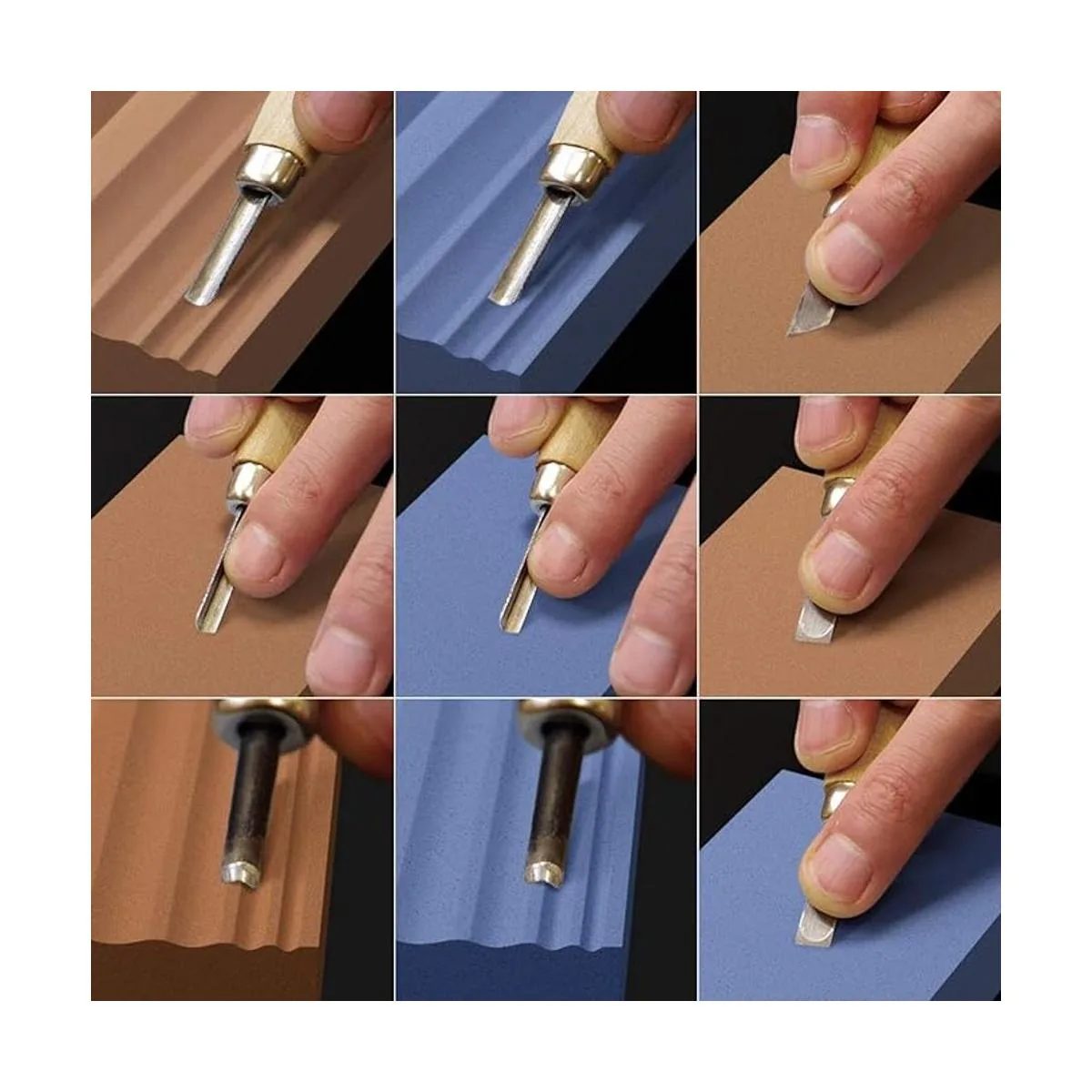 Innovadoras piedras de afilar: nuestra innovadora piedra de afilar de gubia viene con múltiples ranuras para afilar herramientas de torno, herramientas de tallado de madera, cincel de madera y gubias con diferentes contornos. No más dolor y molestias al tratar de afilar herramientas contorneadas y cinceles en una piedra de afilar plana.