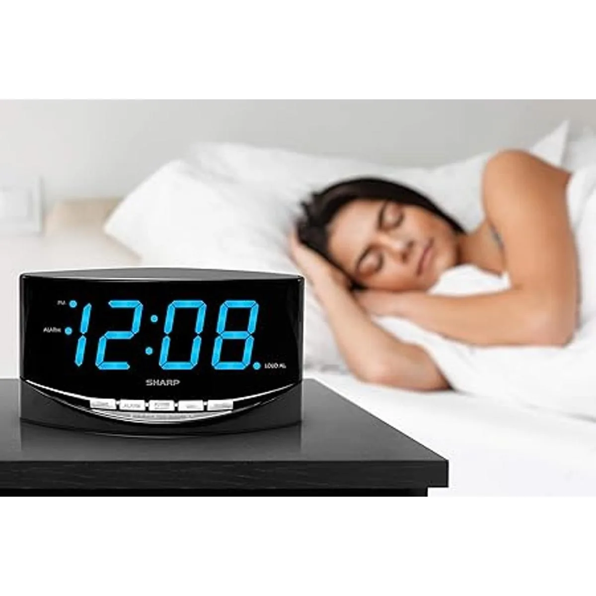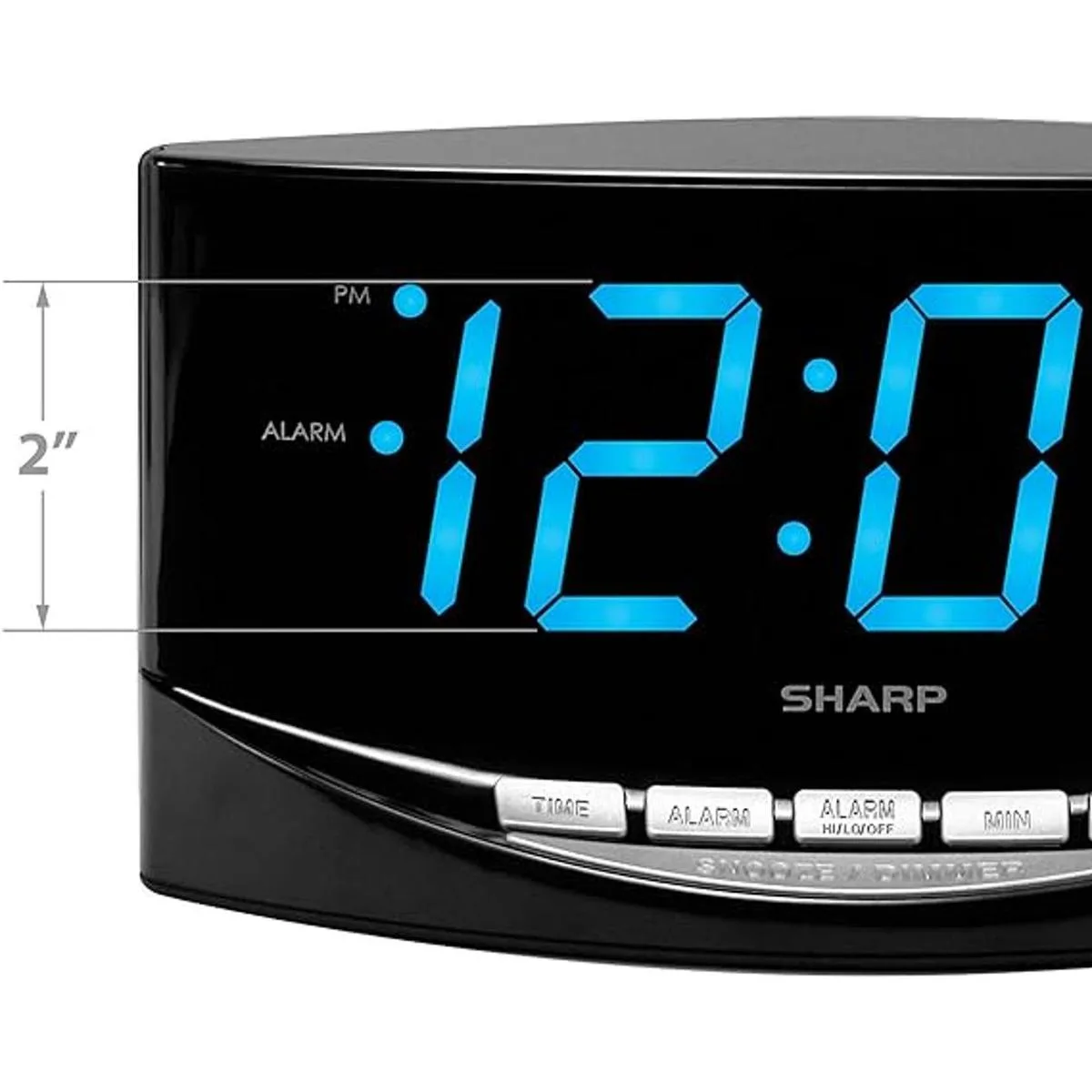 SHARP Reloj despertador fácil de ver con números gigantes de 2 pulgadas, pantalla LED azul brillante, fácil de instalar y fácil de usar, ve desde el otro lado de la habitación Volumen de alarma alto y bajo