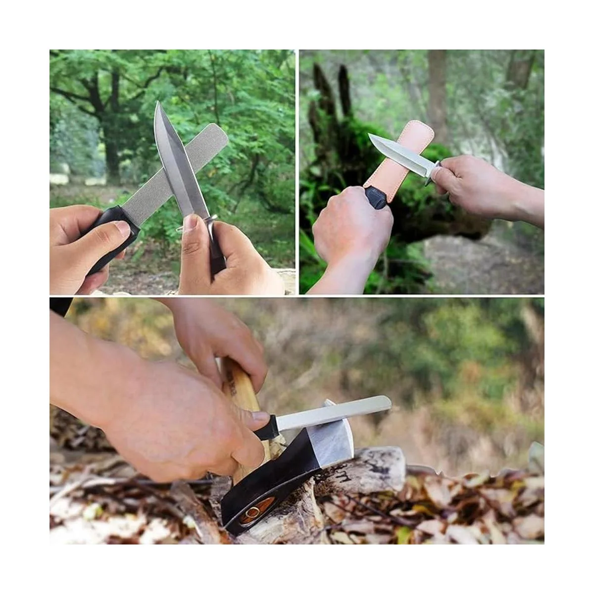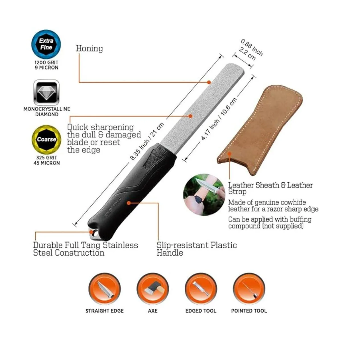 SHARPAL Piedra de afilar diamante de doble grano 127N con poste de cuero, afilador de herramientas para afilar cuchillo, hacha, hacha, hoja de cortacésped, tijeras de jardín, cinceles, pala, taladros y todos los bordes de la hoja