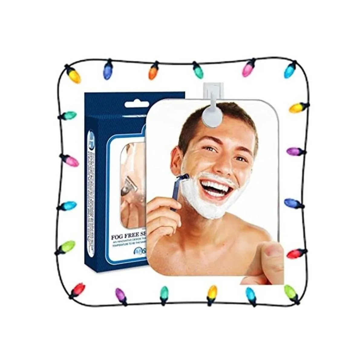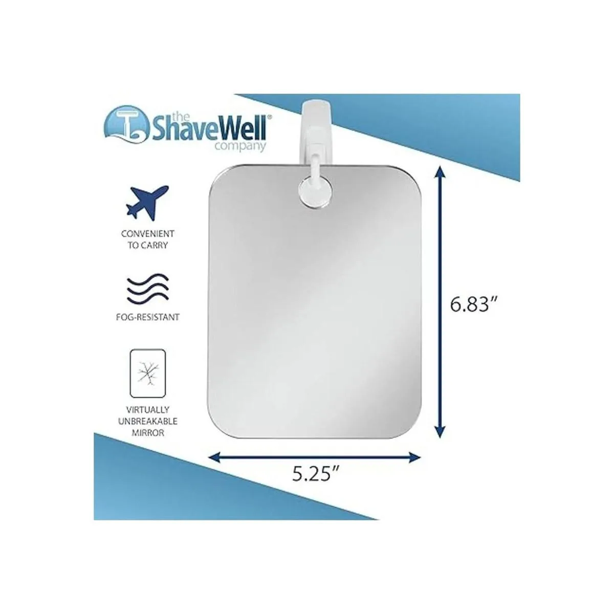 Shave Well Deluxe Espejo de ducha antiniebla, espejo de afeitado de baño sin niebla para hombres y mujeres. Grande, gancho adhesivo extraíble, sin marco, portátil, ideal para viajes, campamento, gimnasio, irrompible