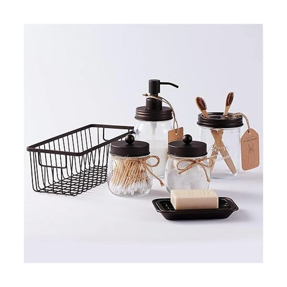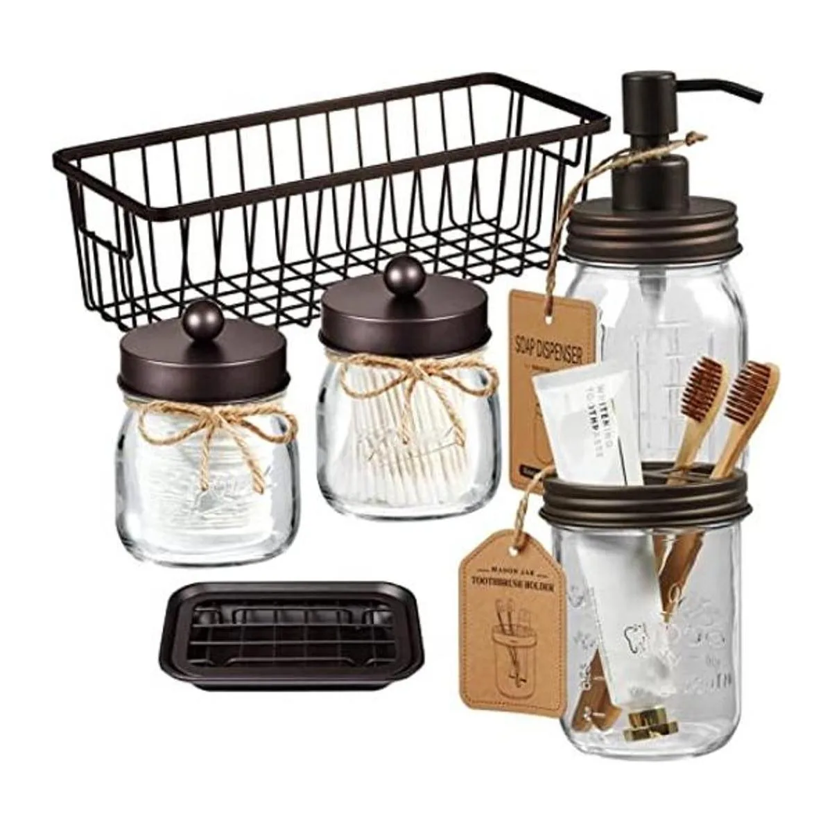 SheeChung. Conjunto de accesorios para baño de frascos Mason, juego de 6 unidades.