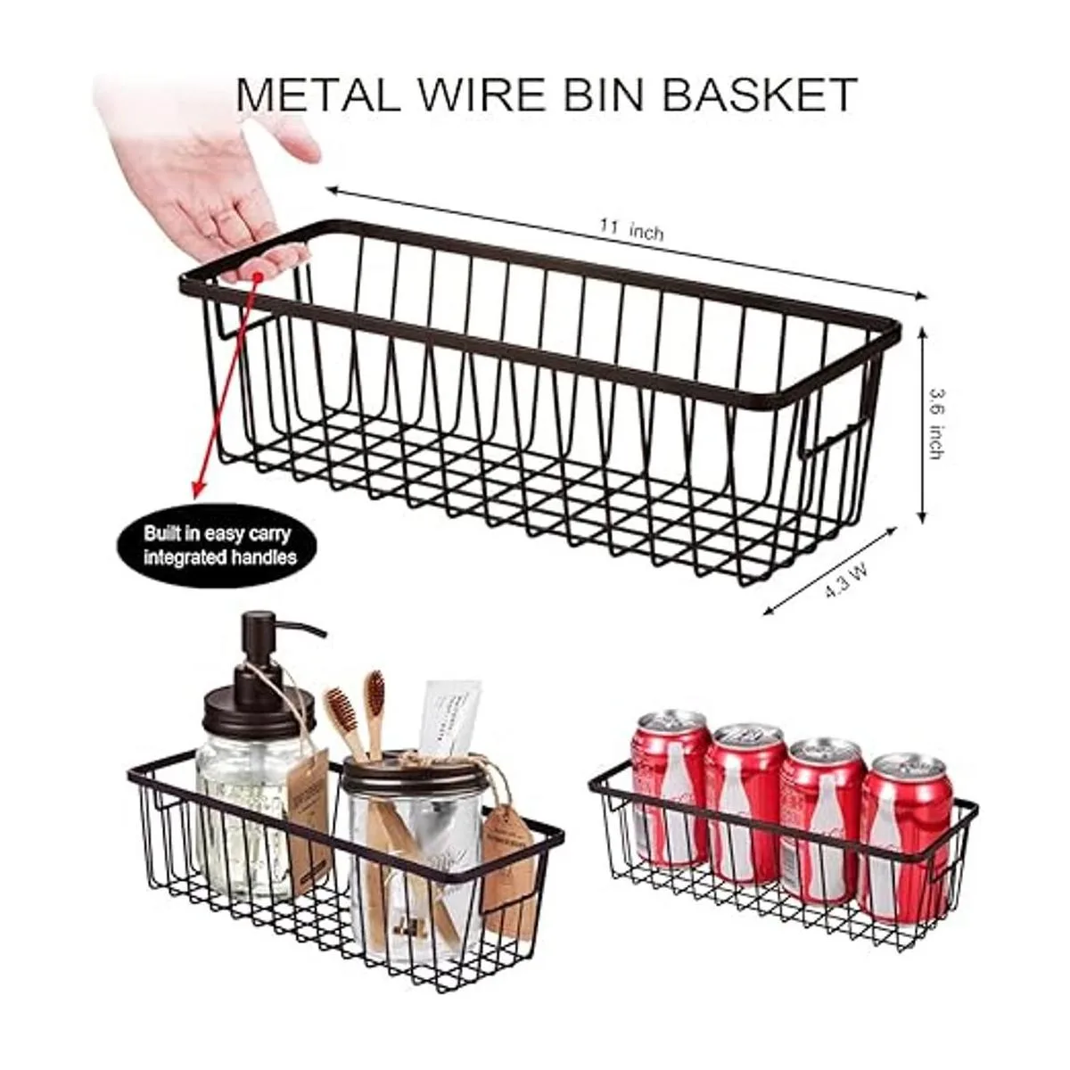 Cesta de alambre funcional para cubos de basura: coloca los tarros de albañil u otros artículos esenciales de baño en la cesta de basura. Es una solución de almacenamiento y organización perfecta para el baño moderno. Ideal para otros artículos como: toallas, velas, pequeños electrodomésticos y herramientas; también funcionan en el refrigerador o congelador; el diseño clásico de alambre abierto ofrece un almacenamiento amplio y fácil para cualquier habitación de tu hogar; pruébalos en estantes flotantes, armarios, armarios. ,lavanderías, salas de manualidades, barros, oficinas, salas de juegos y garajes