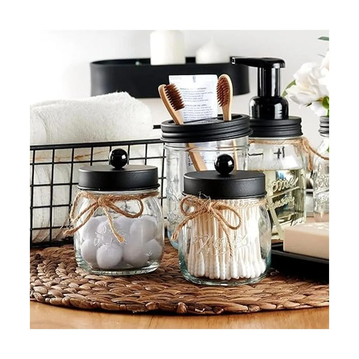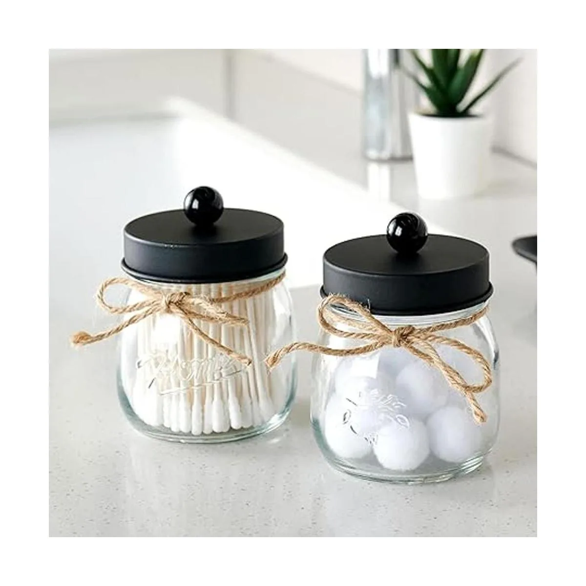 This Mason storage jars are an attractive way to organize items like Qtips, cotton balls, cotton rounds,and flossers,or any other bathroom necessities and accessories. Plus theyre simple and affordable to make