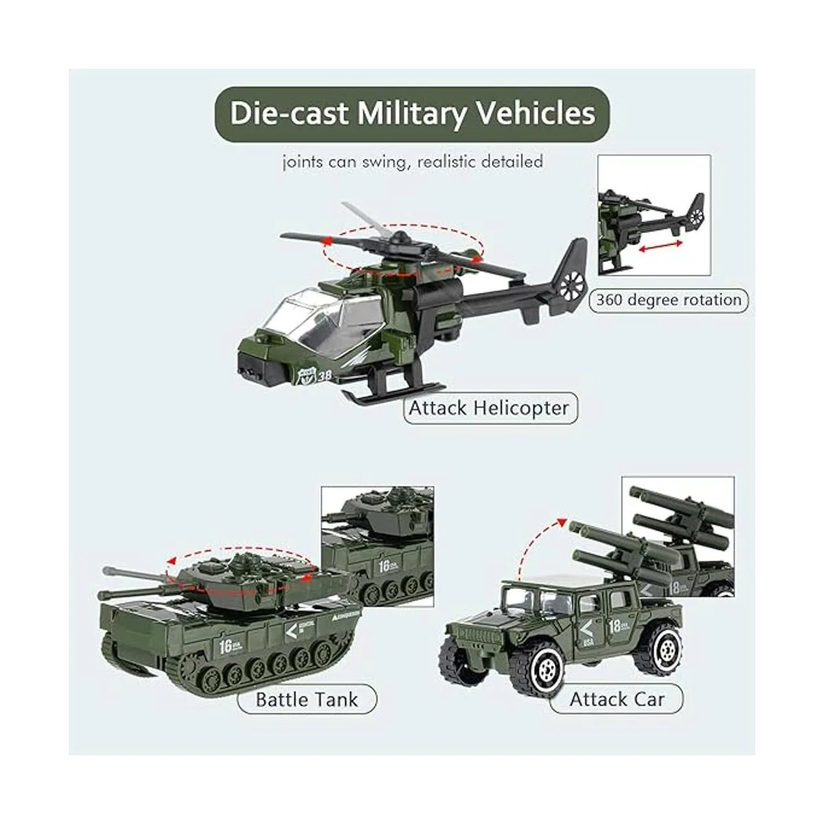 Seis juguetes diferentes del ejército: este juego incluye un tanque, helicóptero de ataque, panzer, vehículo antiaire y helicóptero explorador. Tus encantadores hijos tendrán un rato increíblemente divertido jugando con amigos y familia