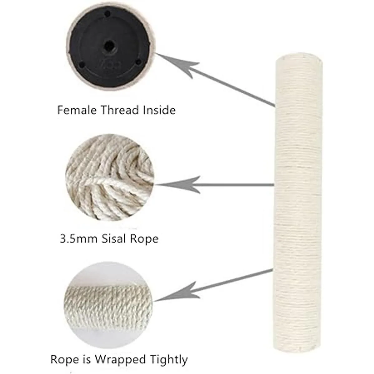 SHENGOCASE 2Pack Cat Tree 17.7 Replacement Sisal Post with M8 M10Screw, Cat Tower Relacement Post, DIY Cat Scratching Post Replacement Part Pole
