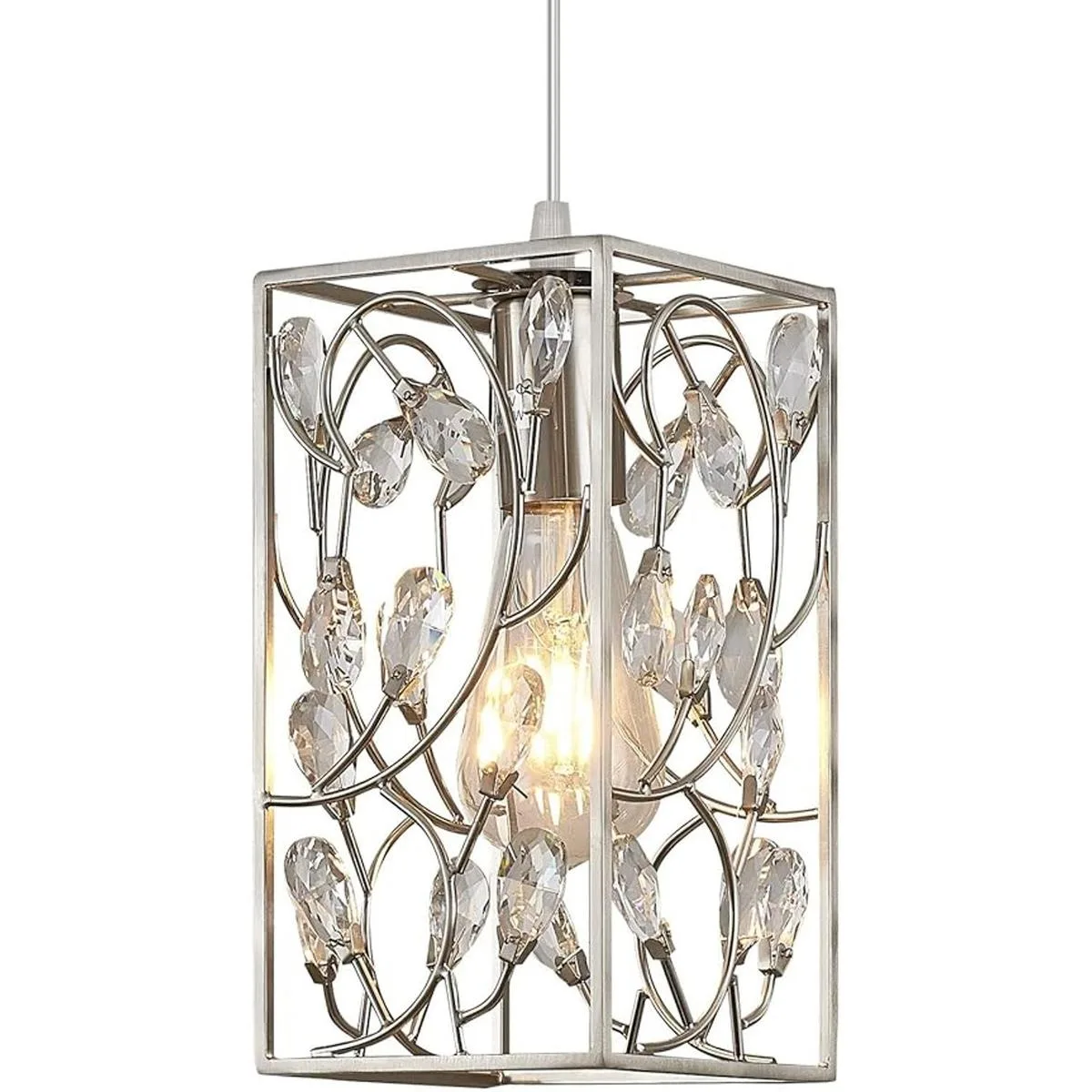 Diseño único: cada cristal está montado a mano en una jaula de metal hecha a medida con acabado de níquel cepillado, dando a esta mini lámpara colgante un aspecto hueco. También muestra arte industrial y crea un ambiente cómodo