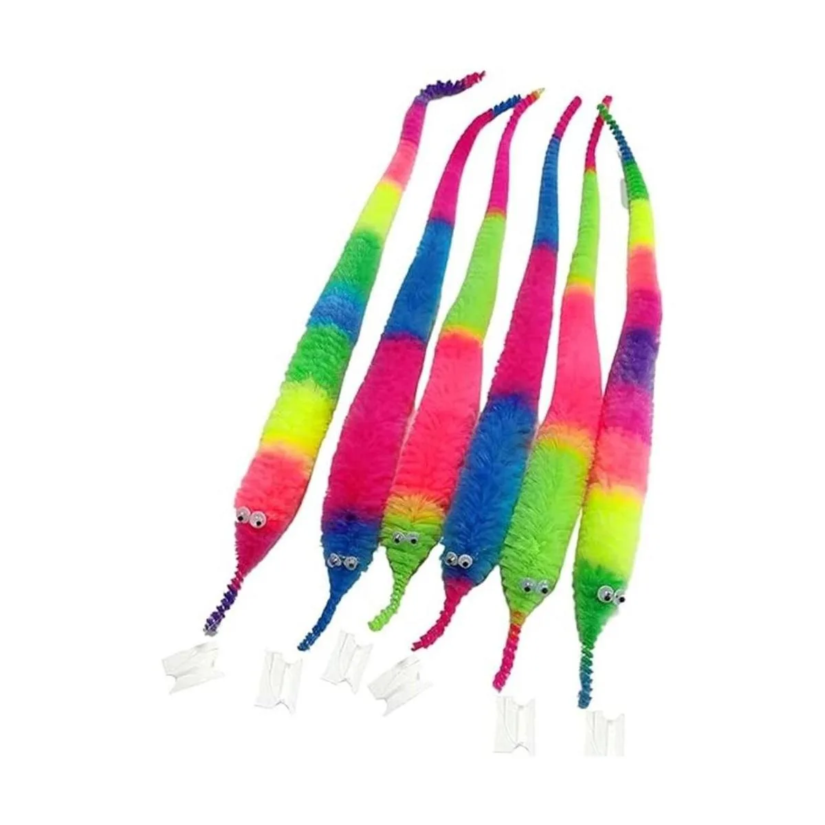 SHENGSEN 6 piezas arco iris gusano mágico juguetes de gusanos difusos en cuerda truco juguetes carnaval fiesta favores