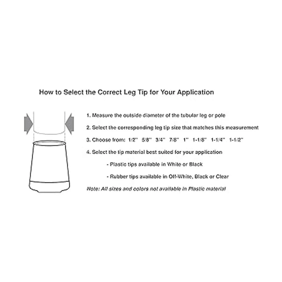 Includes 40 1 inch black rubber leg tips.